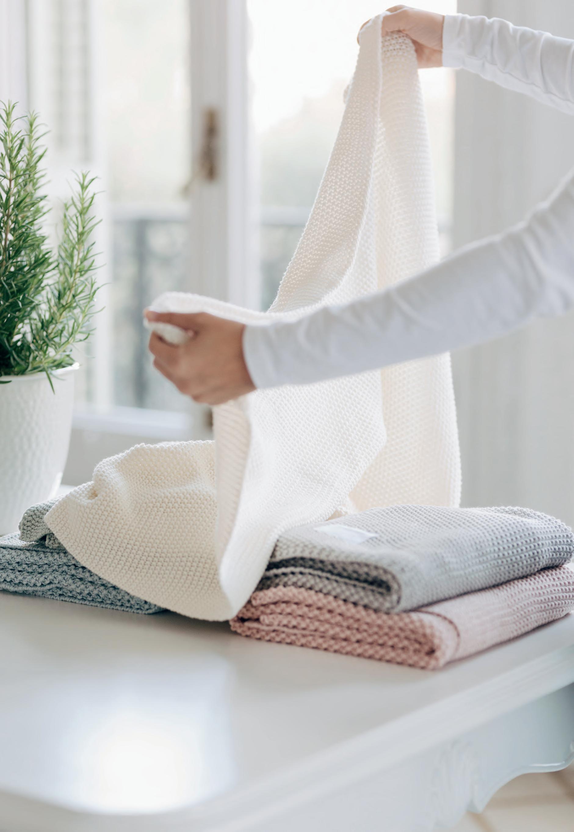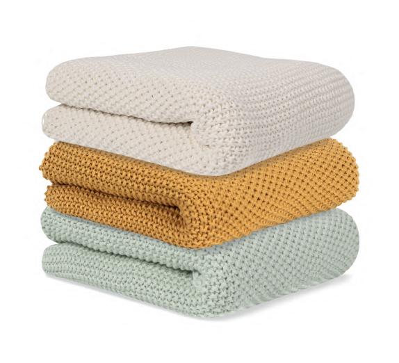 Con una suavidad excepcional y fabricadas con algodón orgánico GOTS (Global Organic Textile Standard), nuestras mantas de punto son el accesorio perfecto para tener siempre a mano.
