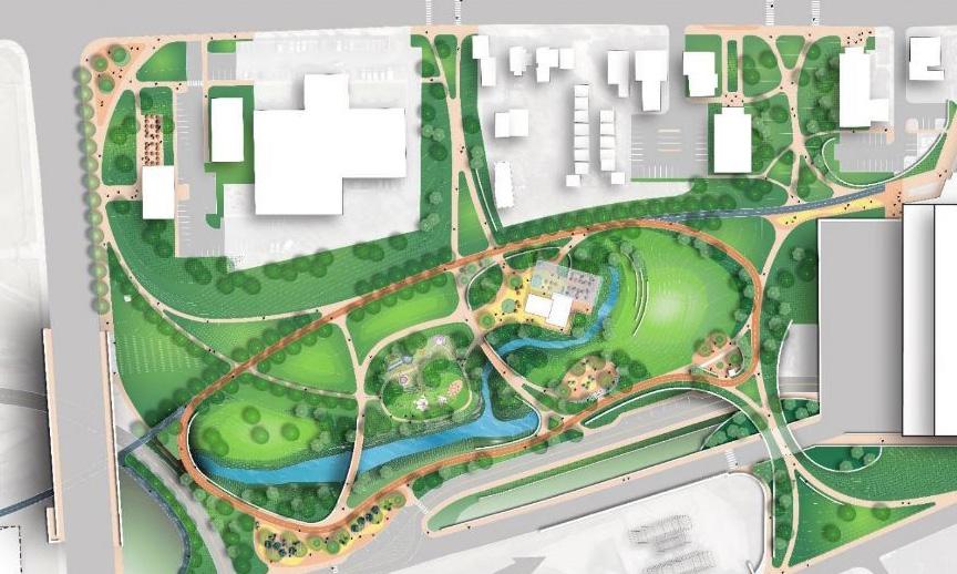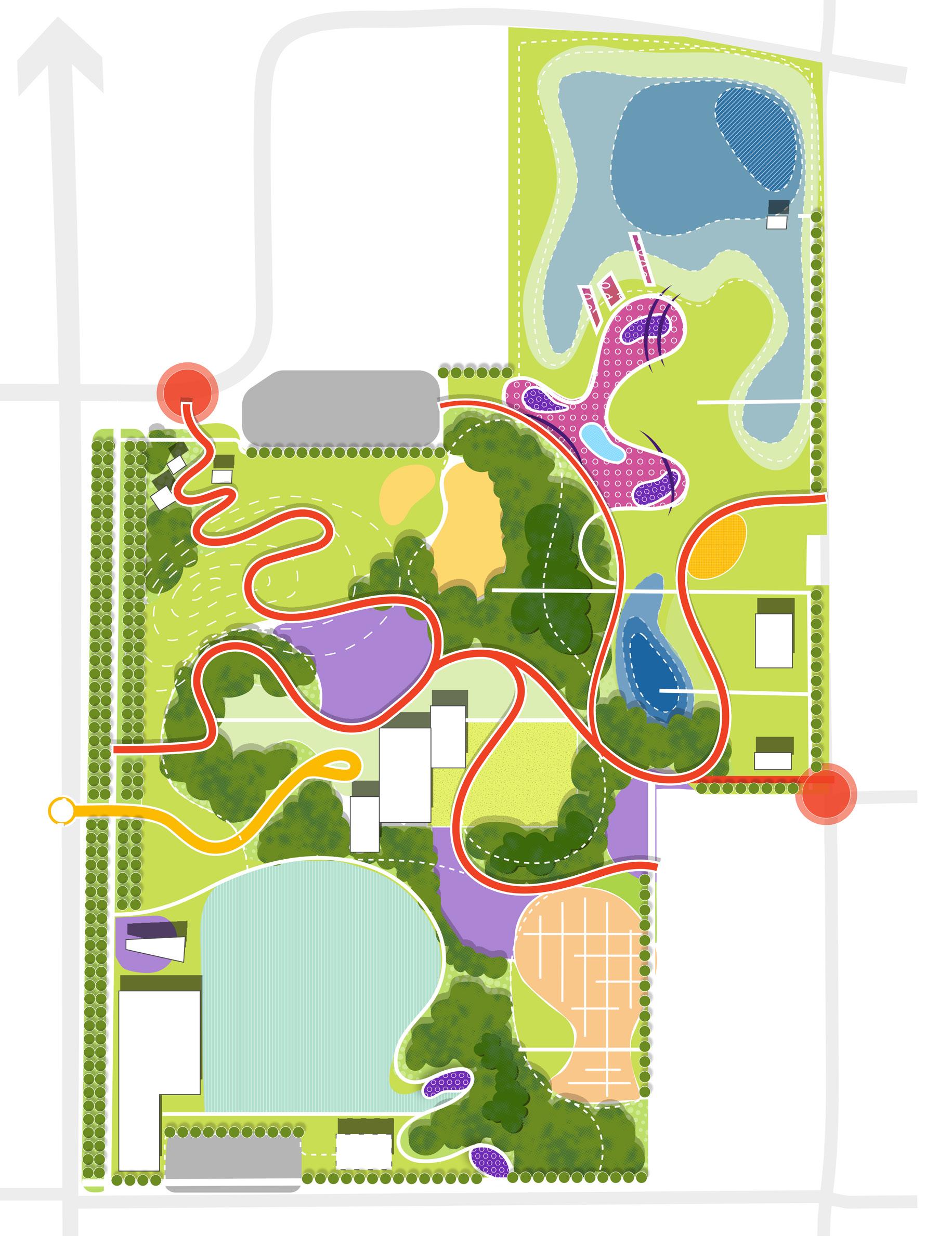 Las ideas iniciales de diseño se desarrollan en un plan del sitio más detallado que define la disposición del parque, la organización espacial, las estrategias de plantación, la iluminación y los materiales.
