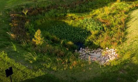 La captación y el tratamiento de las aguas pluviales para convertirlas en un elemento educativo y vivencial del sitio es un
