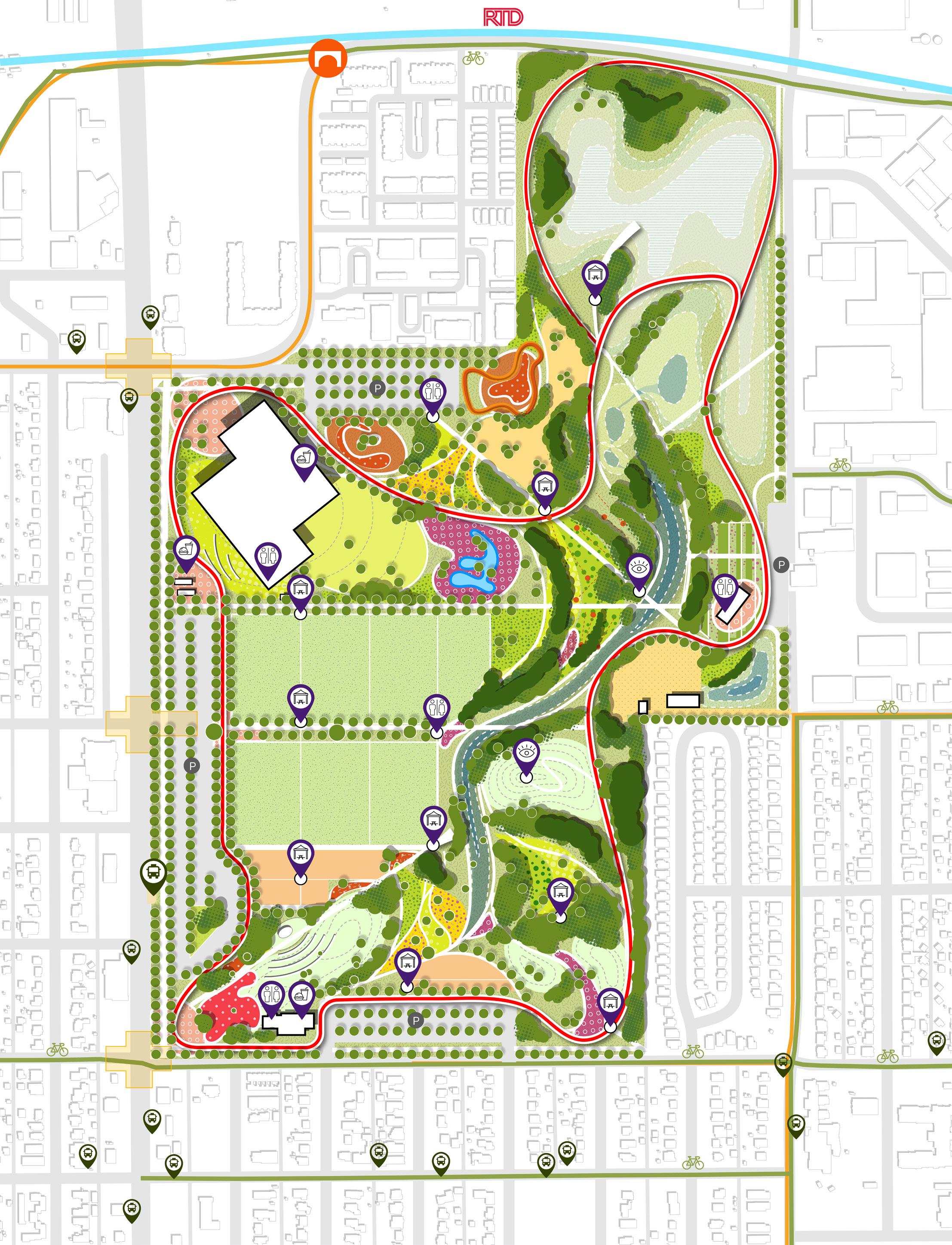 La restauración de los ecosistemas y la mejora de los hábitats impulsan las ideas de diseño. Se proponen diversos tipos de hábitat nativo que brindan refugio para la vida silvestre, alimento para polinizadores y servicios ecosistémicos. Las plantaciones nativas resilientes están bien adaptadas al clima semiárido de Denver y reducen la demanda de riego, al tiempo que ofrecen espacios de descanso y conexión con la naturaleza para las personas visitantes