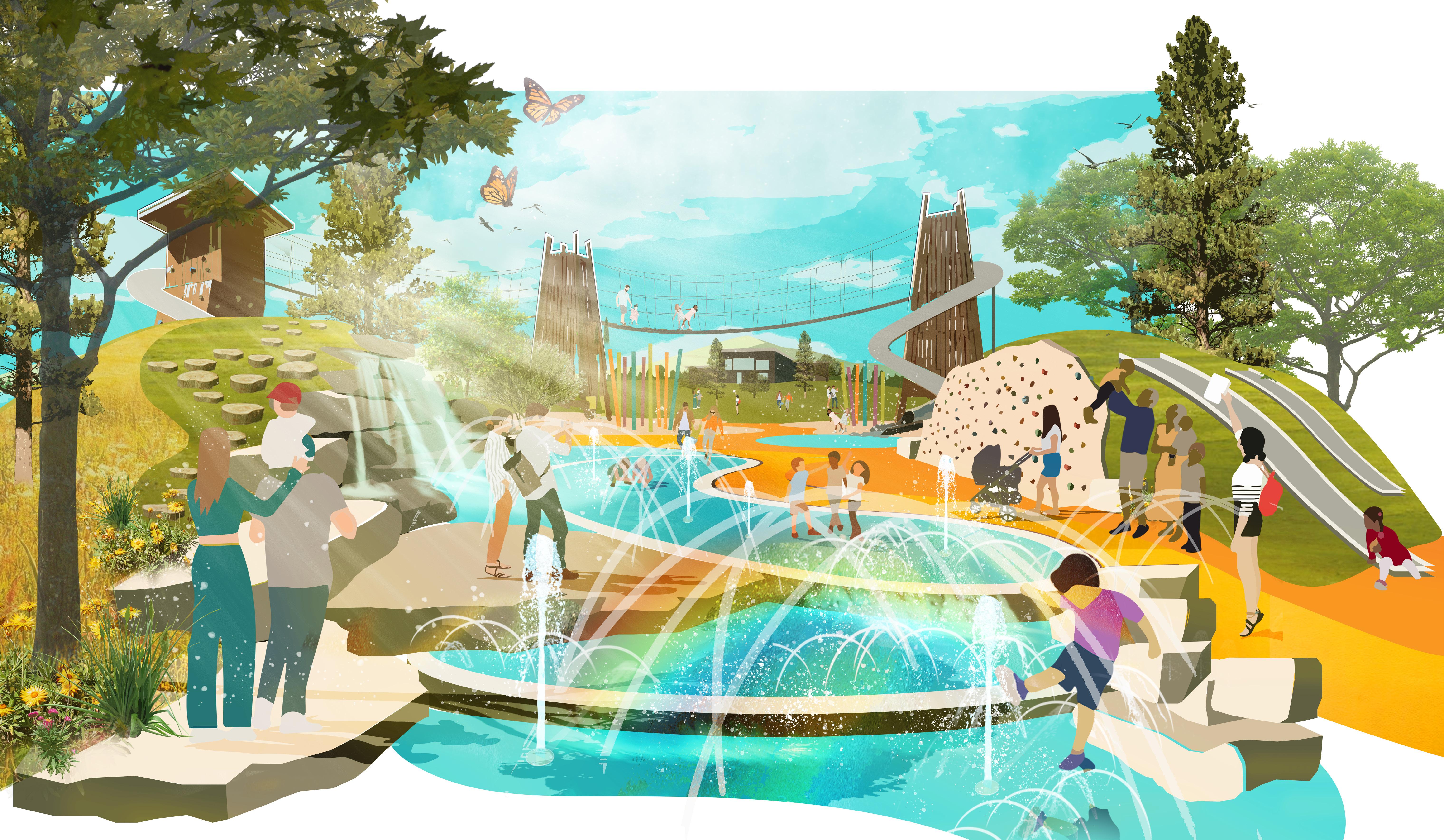 En un parque que atiende los usos activos cotidianos —desde los organizados hasta los aventureros— y los usos recreativos pasivos diarios —enfocados en la conexión con la naturaleza y entre las personas—, al mismo tiempo que apoya eventos atléticos, comunitarios y culturales de mayor escala.