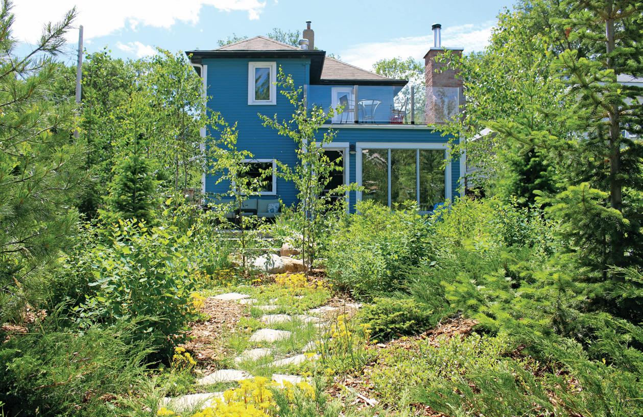 What to do with the overgrown yard was a daunting question. “We took out probably 40 trees, old wormy apples, Manitoba maples; volunteers had sprouted everywhere. You could stand in the backyard