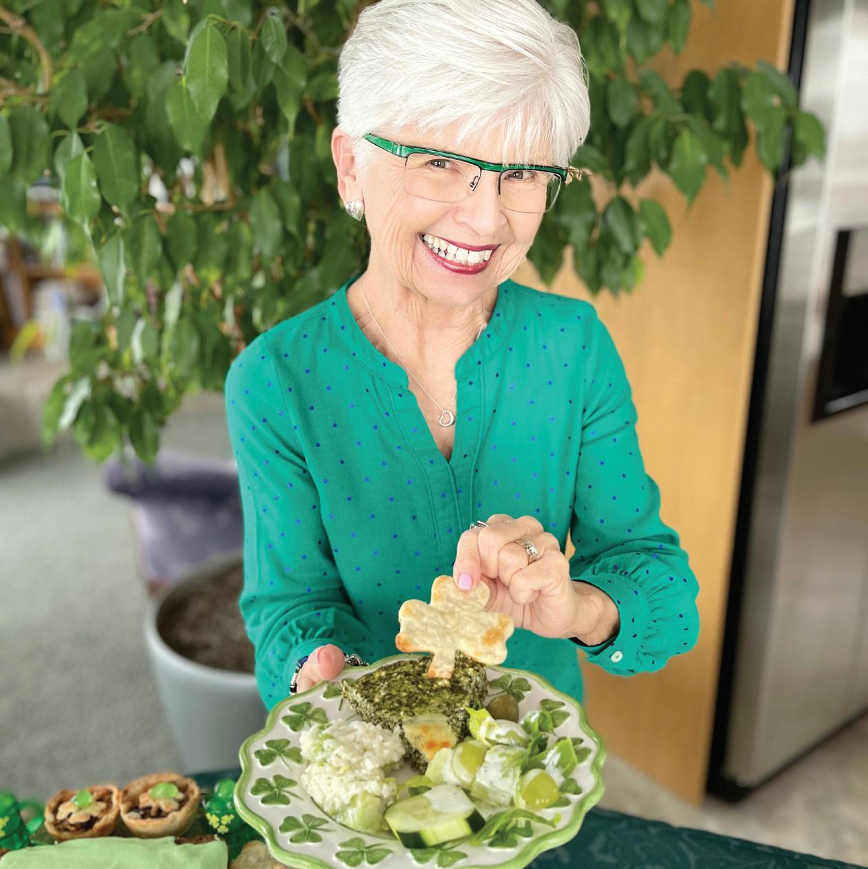 Meat just shouldn’t be green, but you can garnish a cherry glazed ham with green cherries or pour a parsley or dill sauce over a slice of roast beef, pork or cutlets. I have often served spinach quiche or wedges of a green quesadilla.