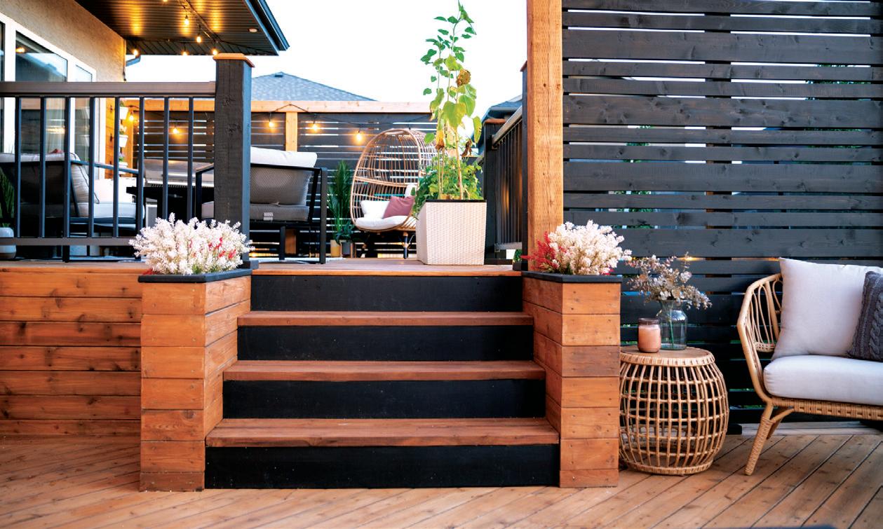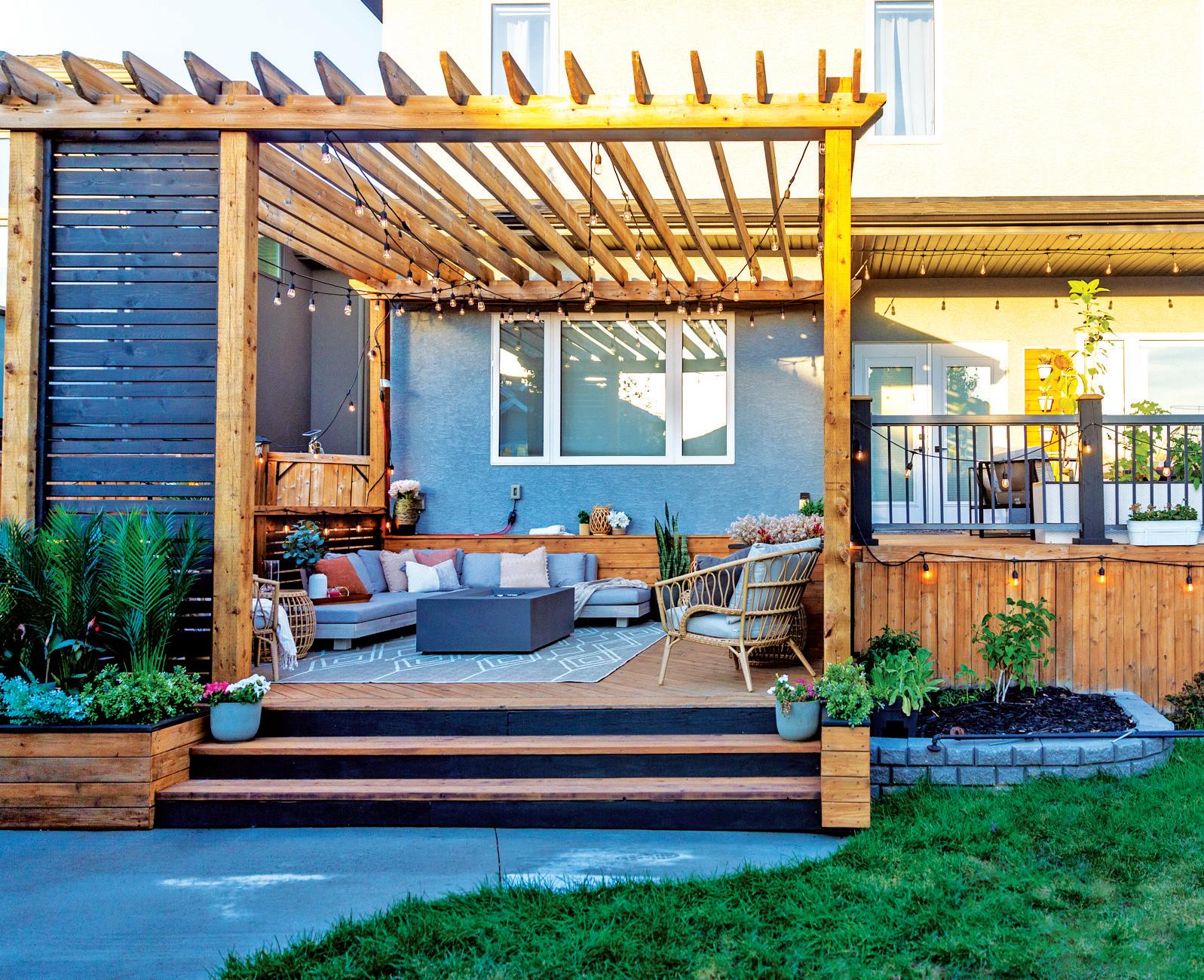 shared online, the backyard refresh has made the biggest splash. “This project— specifically the privacy walls I built—was one of my most viral videos online to date,” she says. “It has been replicated now more times than I can count, and as a DIYer and content creator, re-creation is the biggest compliment.”