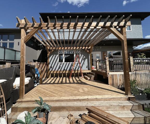 BY: JULIE BARNES JENNA RUTHERFORDThe deck and pergola were no longer level due to previous drainage issues that caused the supports to shift. “The stairs were no longer the proper rise and run,” she says. “Another problem we had is the dining room window couldn’t fully