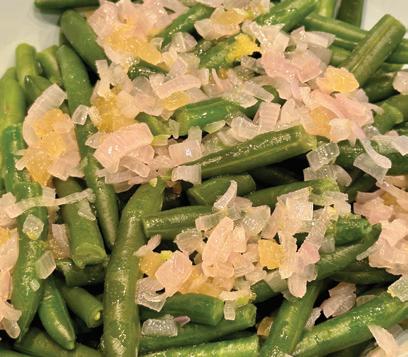 In a small fry pan, melt clarified butter or oil and sauté shallots and ginger until tender. Add lemon zest. Toss mixture with beans and refrigerate until ready to heat.