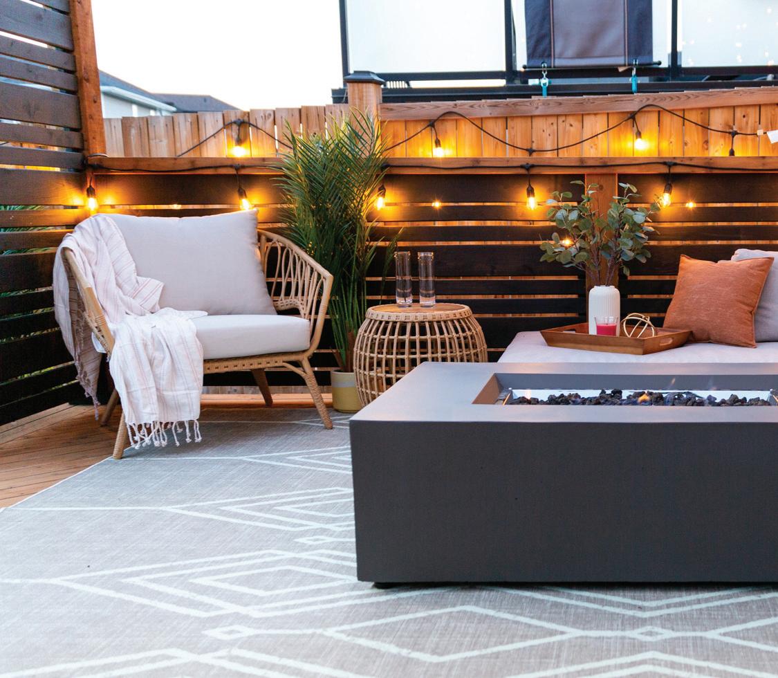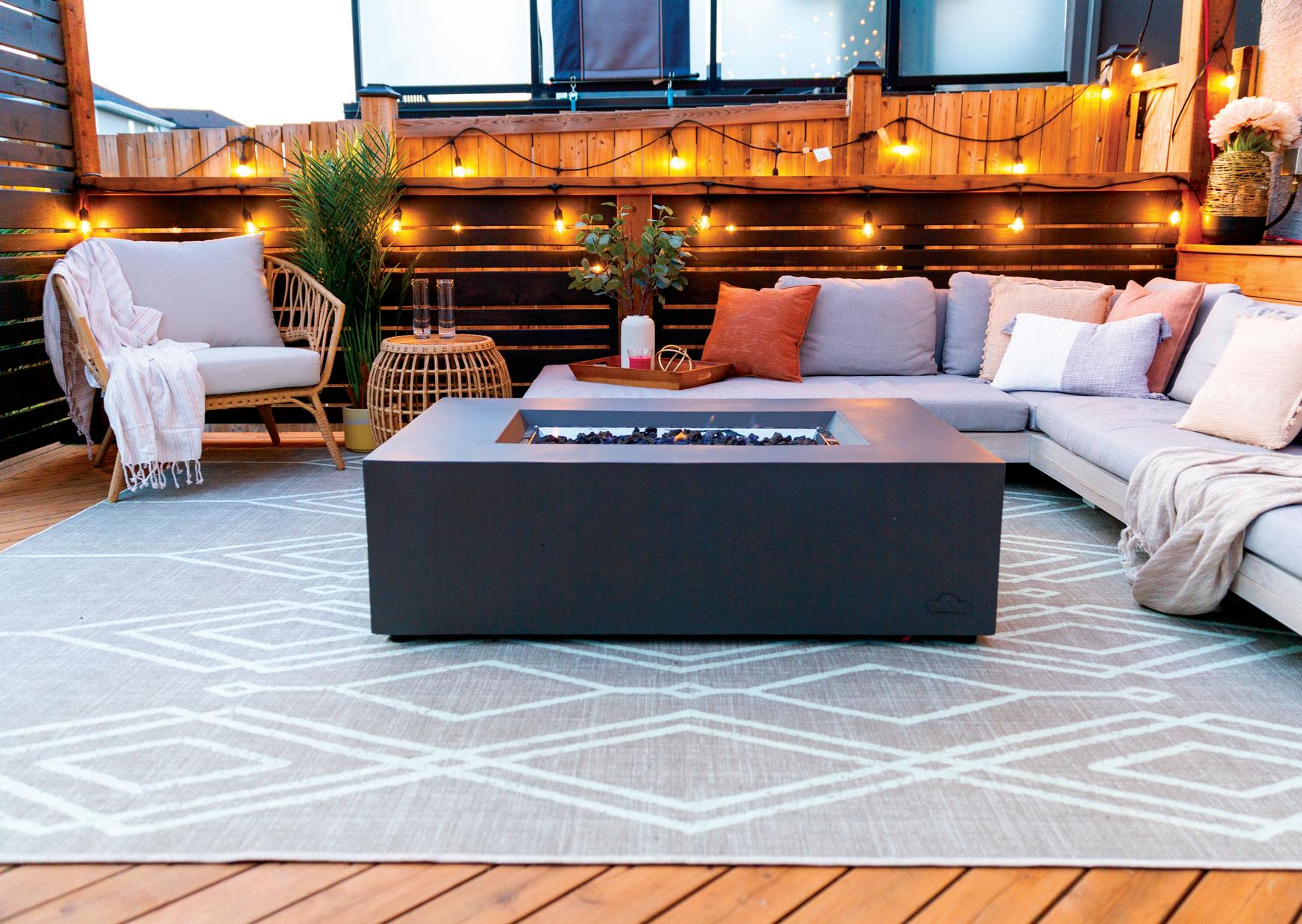 String lights and a fire table create a cosy ambiance and allow the family to linger a little longer outside on summer nights. Finishing this intensive project allowed Jenna and her family to host more often. “We love having company and sharing our home with those close to us.”