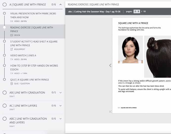 Full access to the Sassoon Connect digital program in ABC Cut, ABC Colour and ABC Men along with all 3 manuals and workbooks.