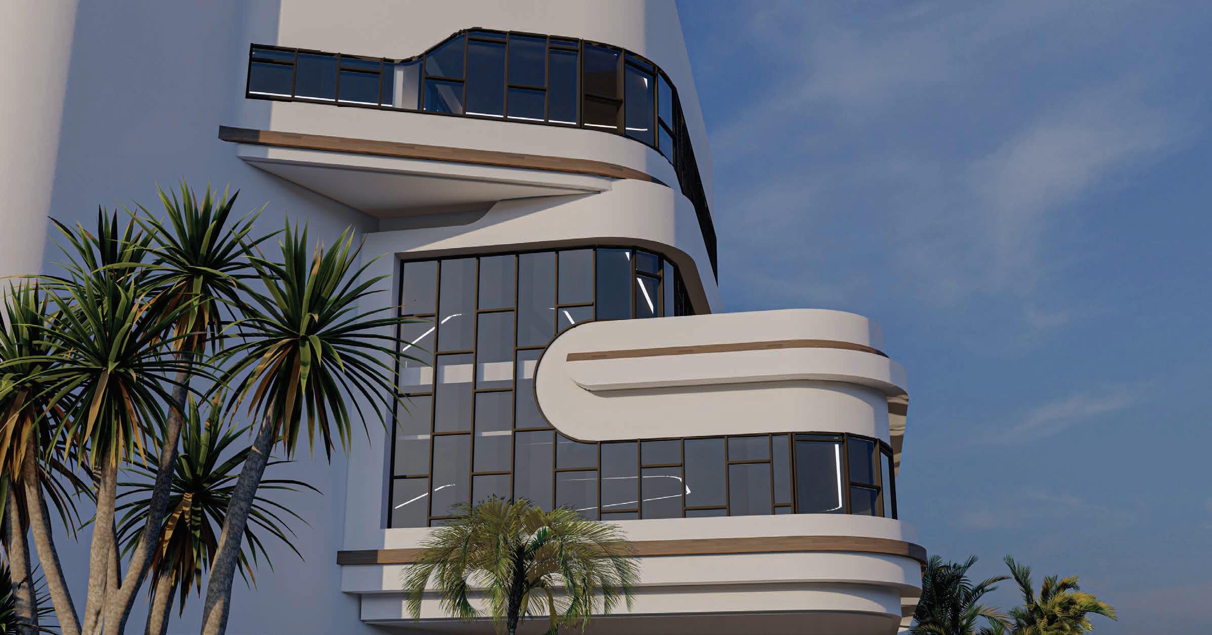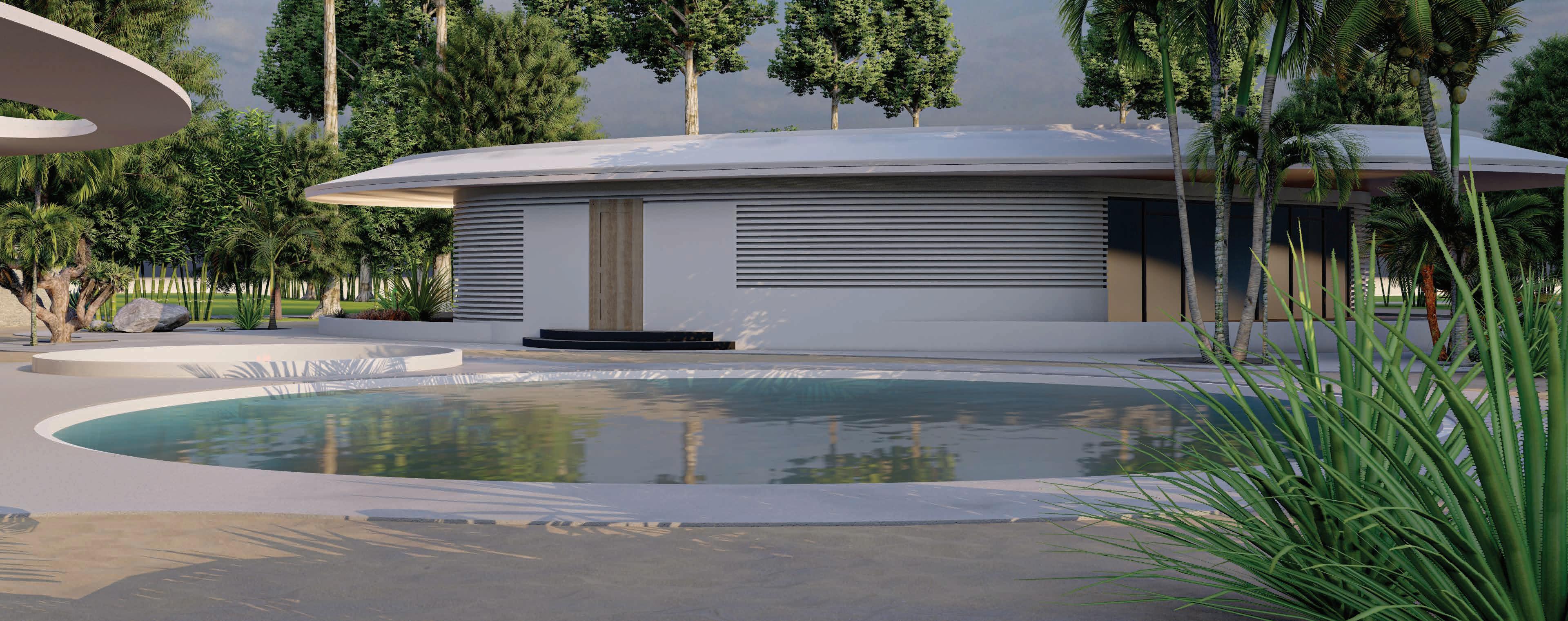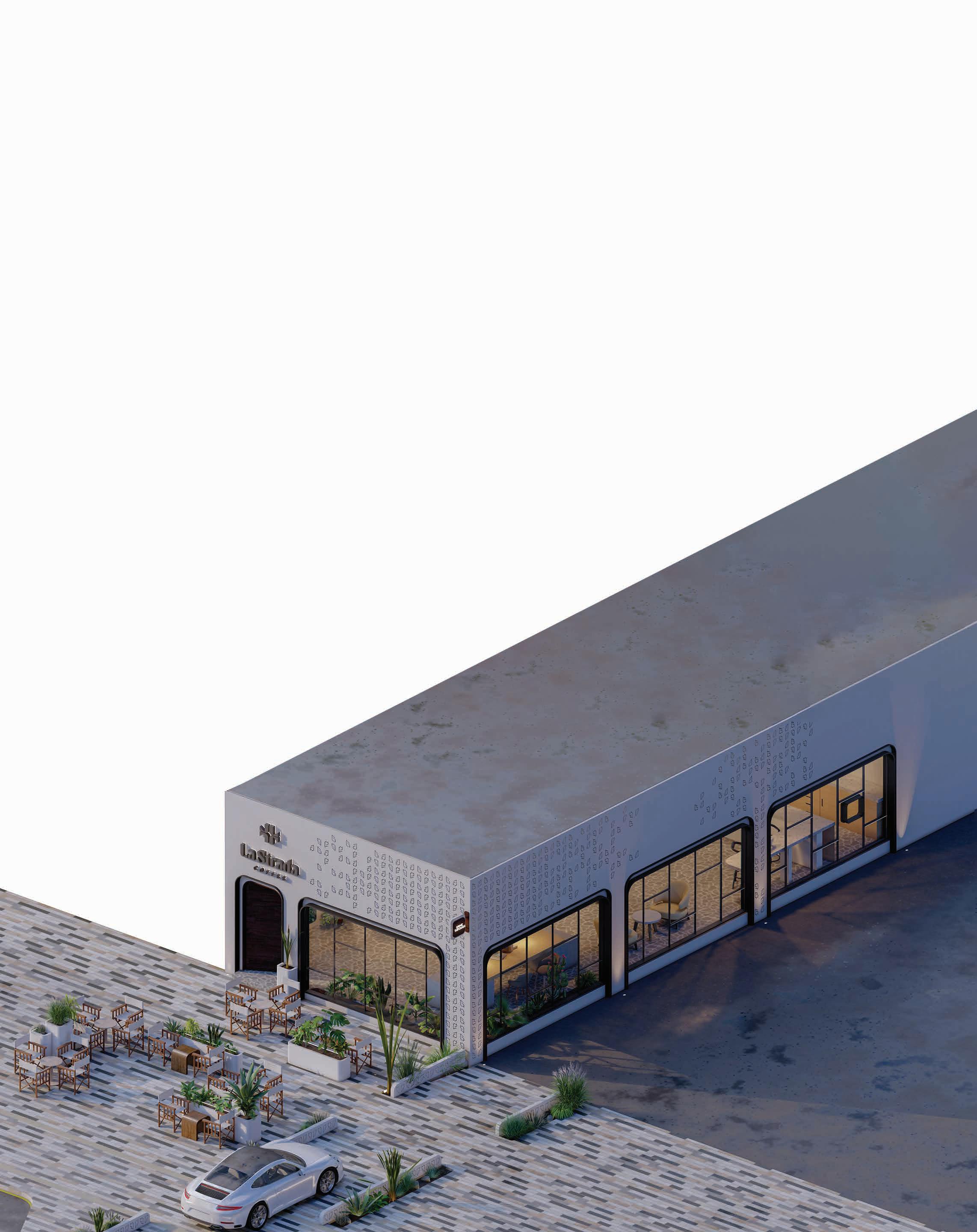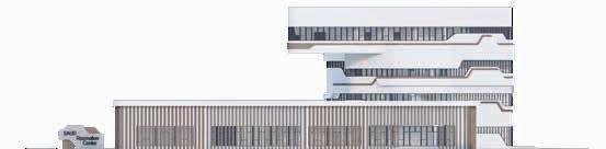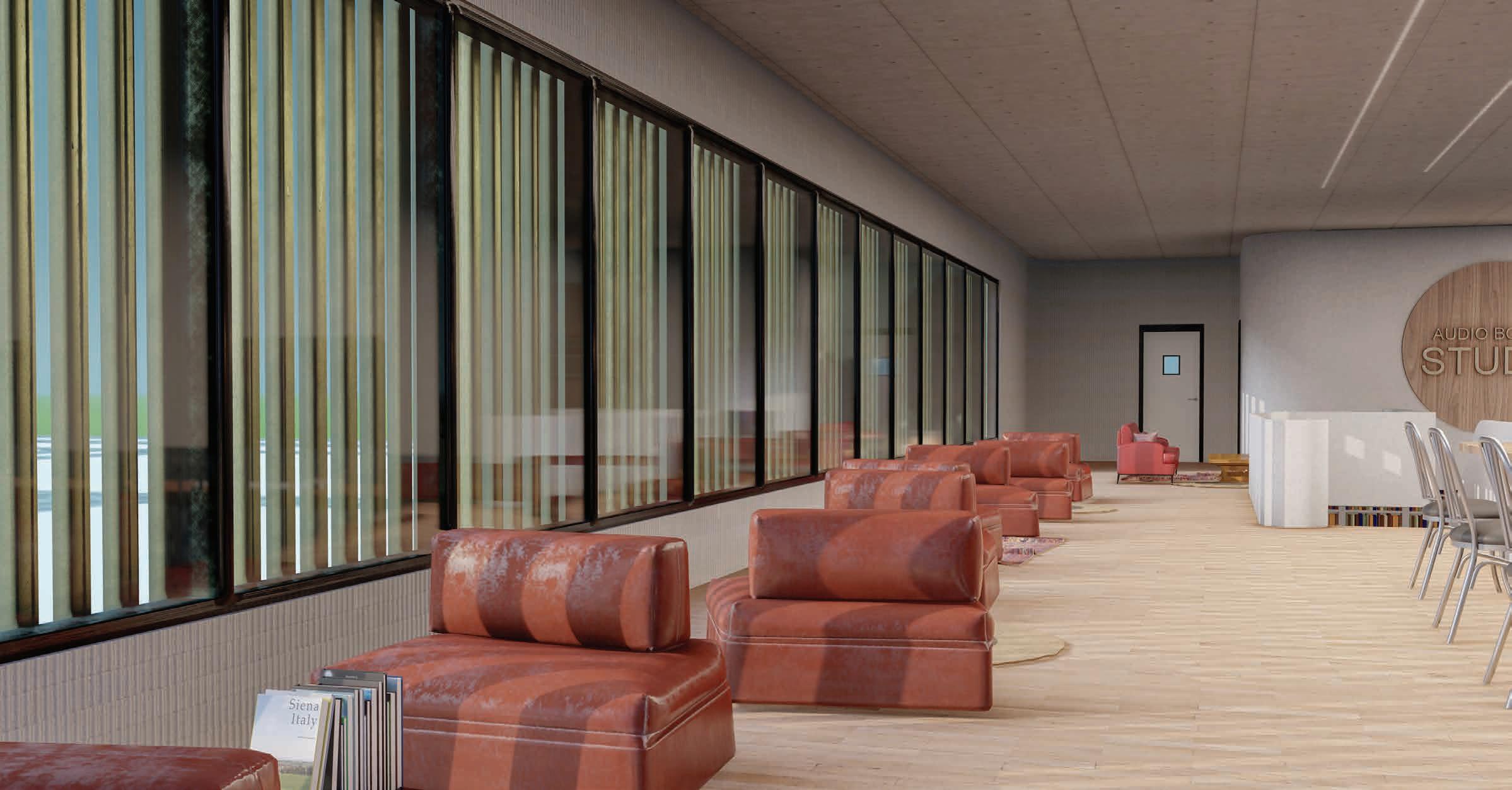 BUILDING - A: HAS THE SAME FLUID DYNAMIC WITH THE MAIN CONCEPT WHERE IT SHARES A CONNECTION WITH THE WALLS AND THE LANDSCAPE, IT ALSO CONNECTS THE INNER ENVIRONMENT WITH THE EXTERIOR ENVIRONMENT AND SHADES THE INTERIOR WITH LARG SHADING DEVICES THAT GO ALONG THE ELEVATIONS AND PROTECTS THE USERS FROM THE SUN RAY.