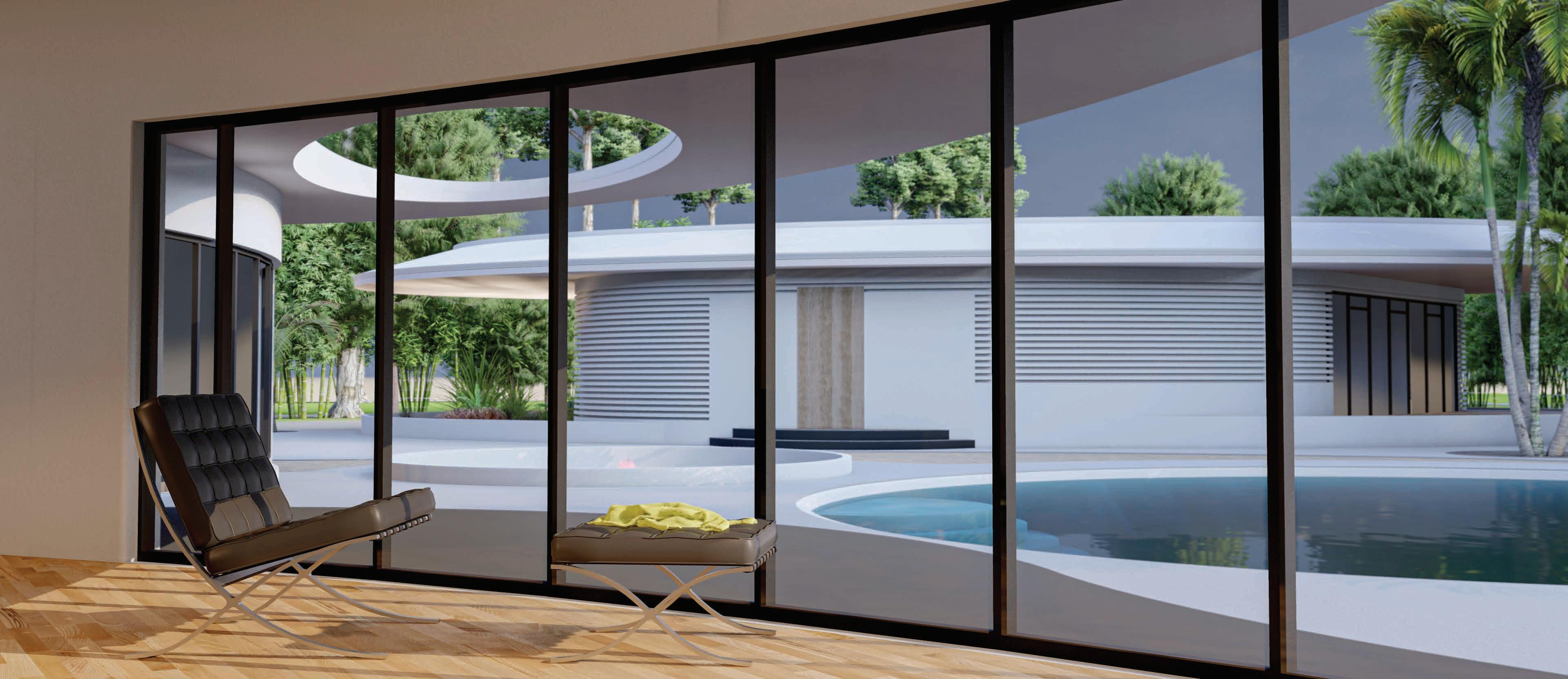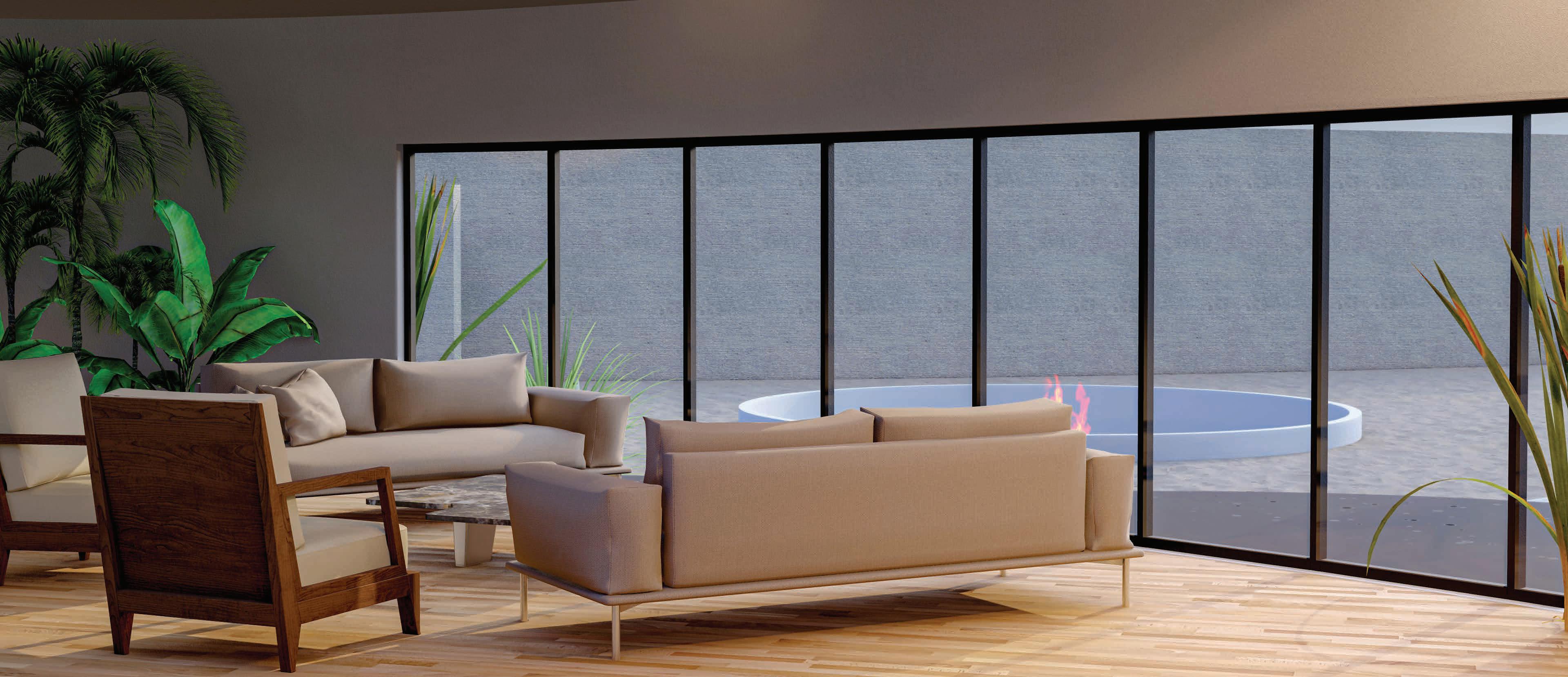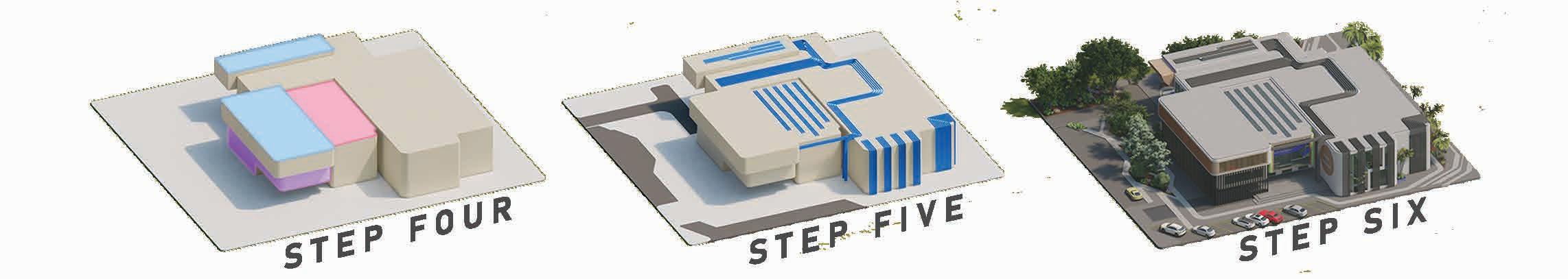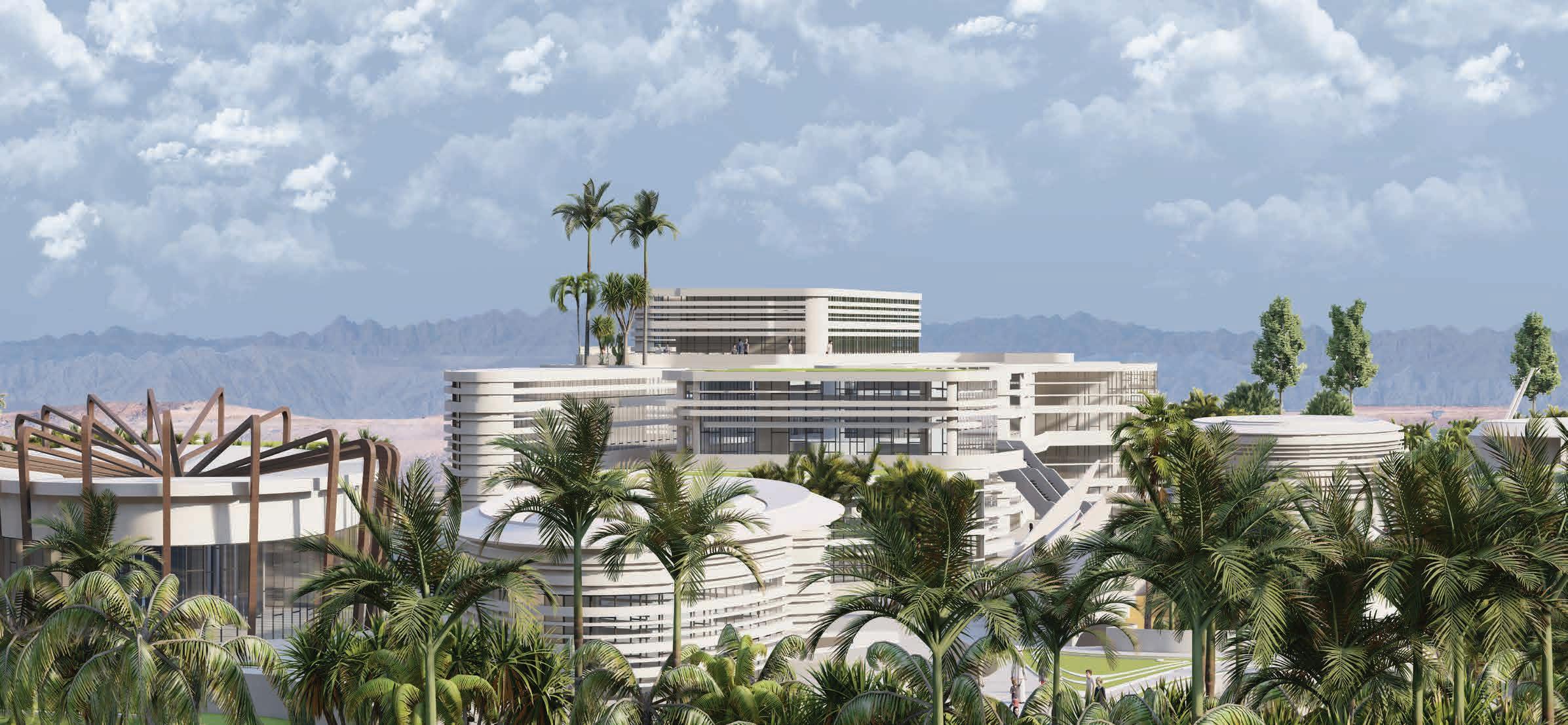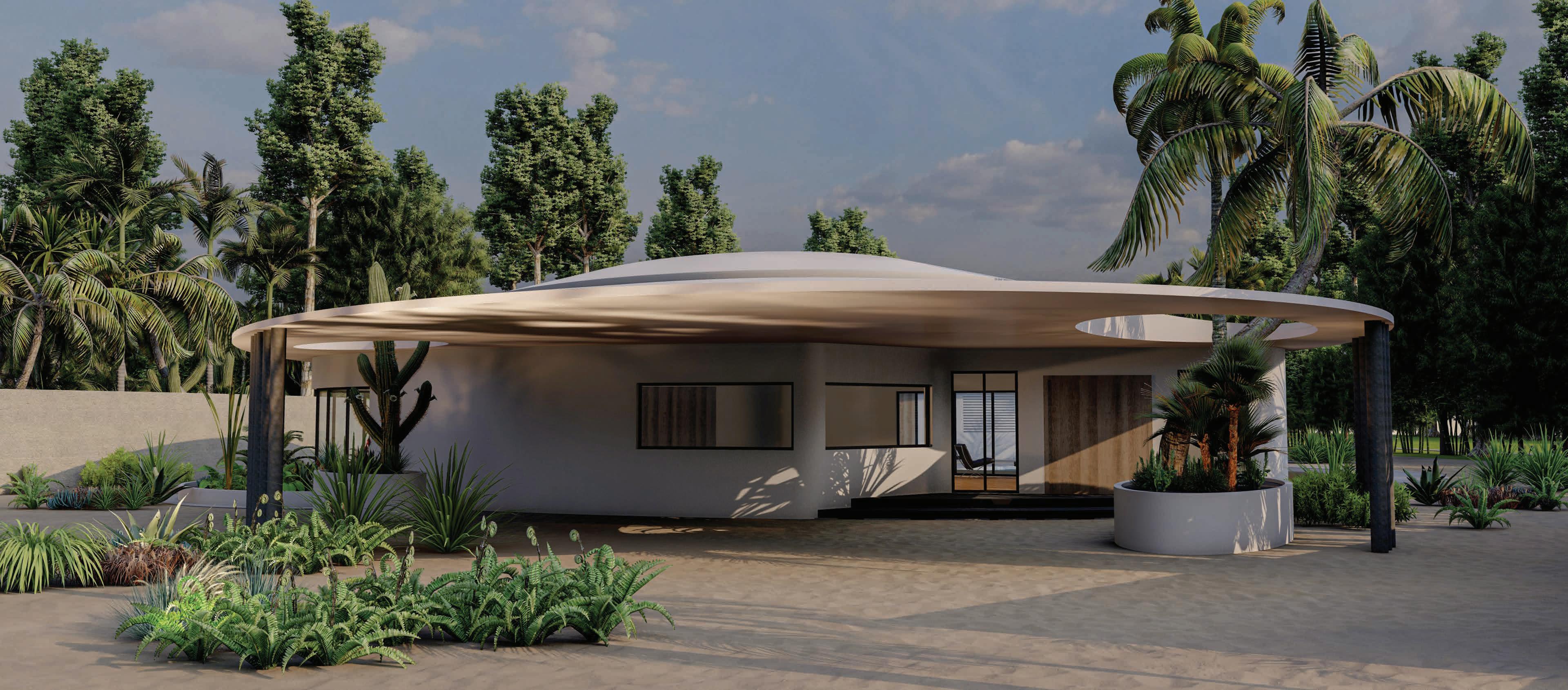 BUILDING - A: HAS THE SAME FLUID DYNAMIC WITH THE MAIN CONCEPT WHERE IT SHARES A CONNECTION WITH THE WALLS AND THE LANDSCAPE, IT ALSO CONNECTS THE INNER ENVIRONMENT WITH THE EXTERIOR ENVIRONMENT AND SHADES THE INTERIOR WITH LARG SHADING DEVICES THAT GO ALONG THE ELEVATIONS AND PROTECTS THE USERS FROM THE SUN RAY.