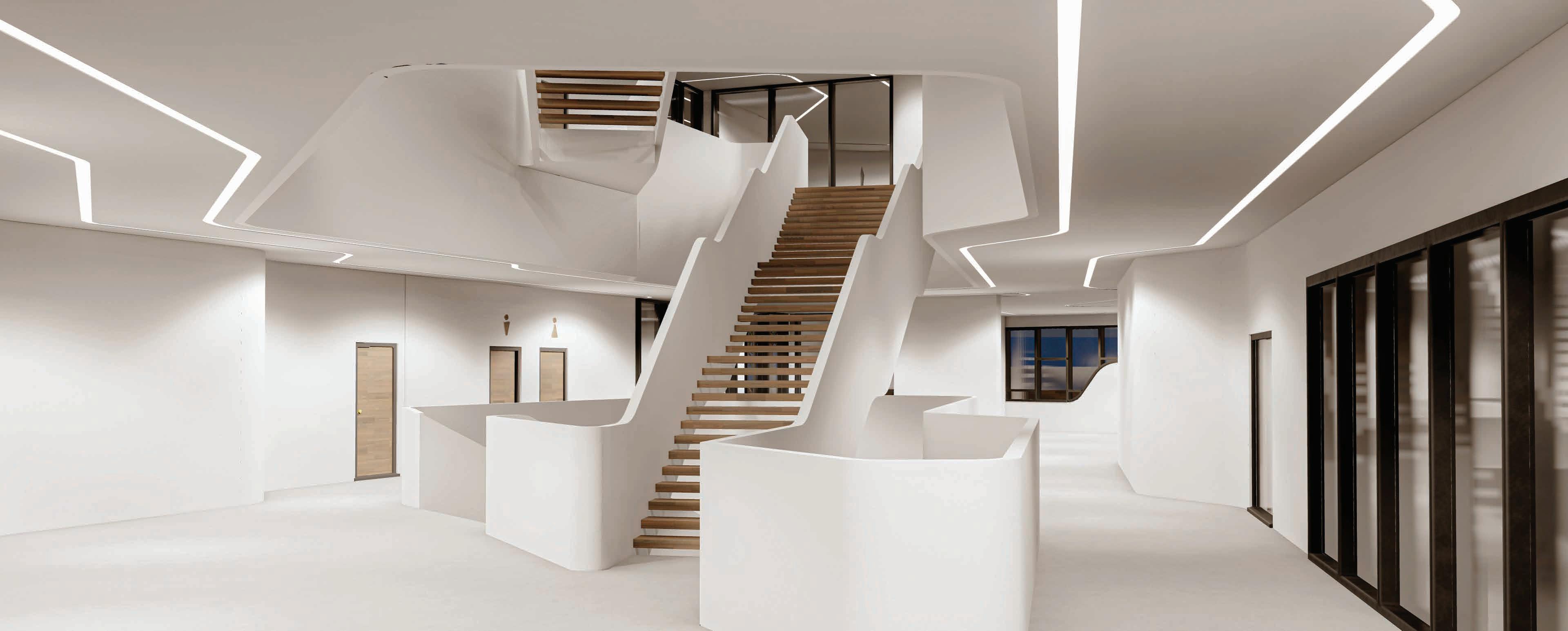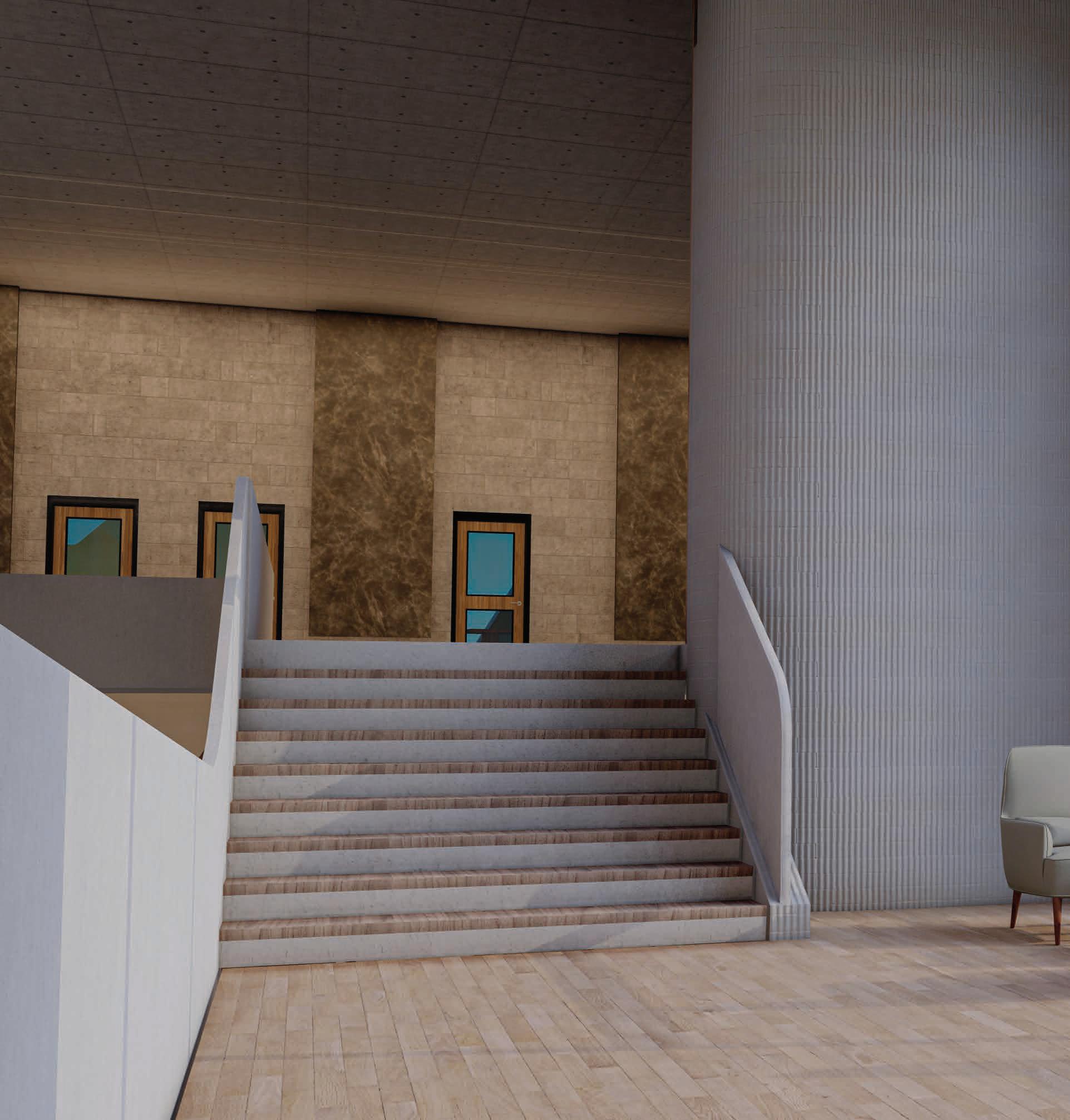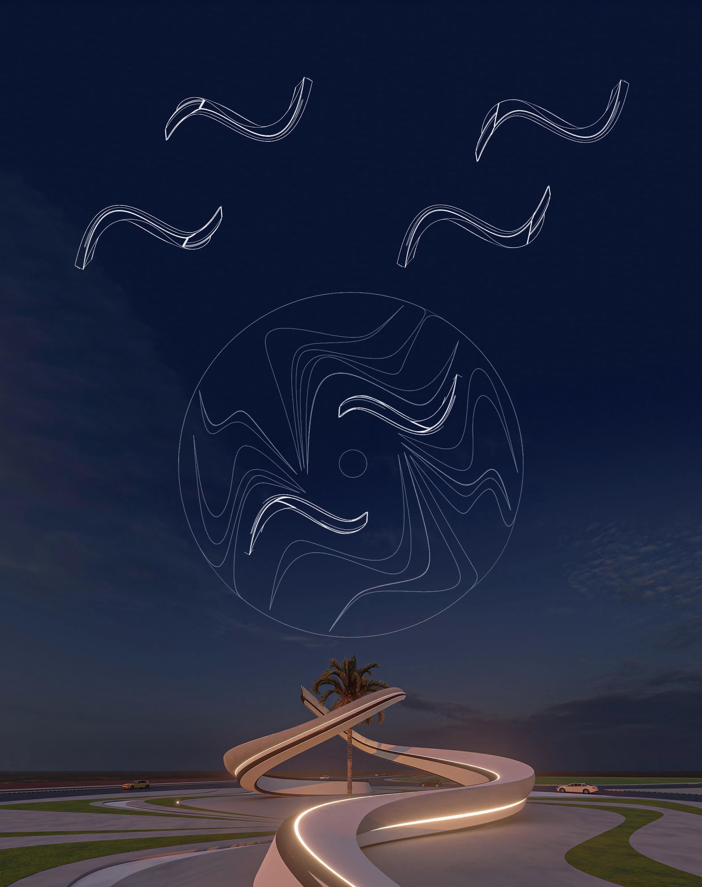 THE CONCEPT IS TAKEN FROM THE PATH OF THE WIND FROM THE NORTH AND THE SOUTH, WHERE THE COOL AND SMOOTH NORTHERN WIND SHAPES THE SOFT EDGES AND SMOOTH CURVES, WHILST THE HARSH SOUTHERN WIND HELD WITH DUST PARTICLES SHAPES THE HARD HORIZONTAL FACES OF THE BUILDING.