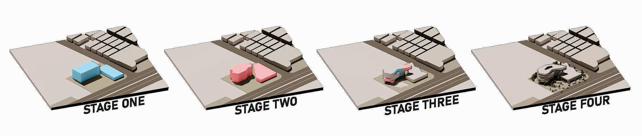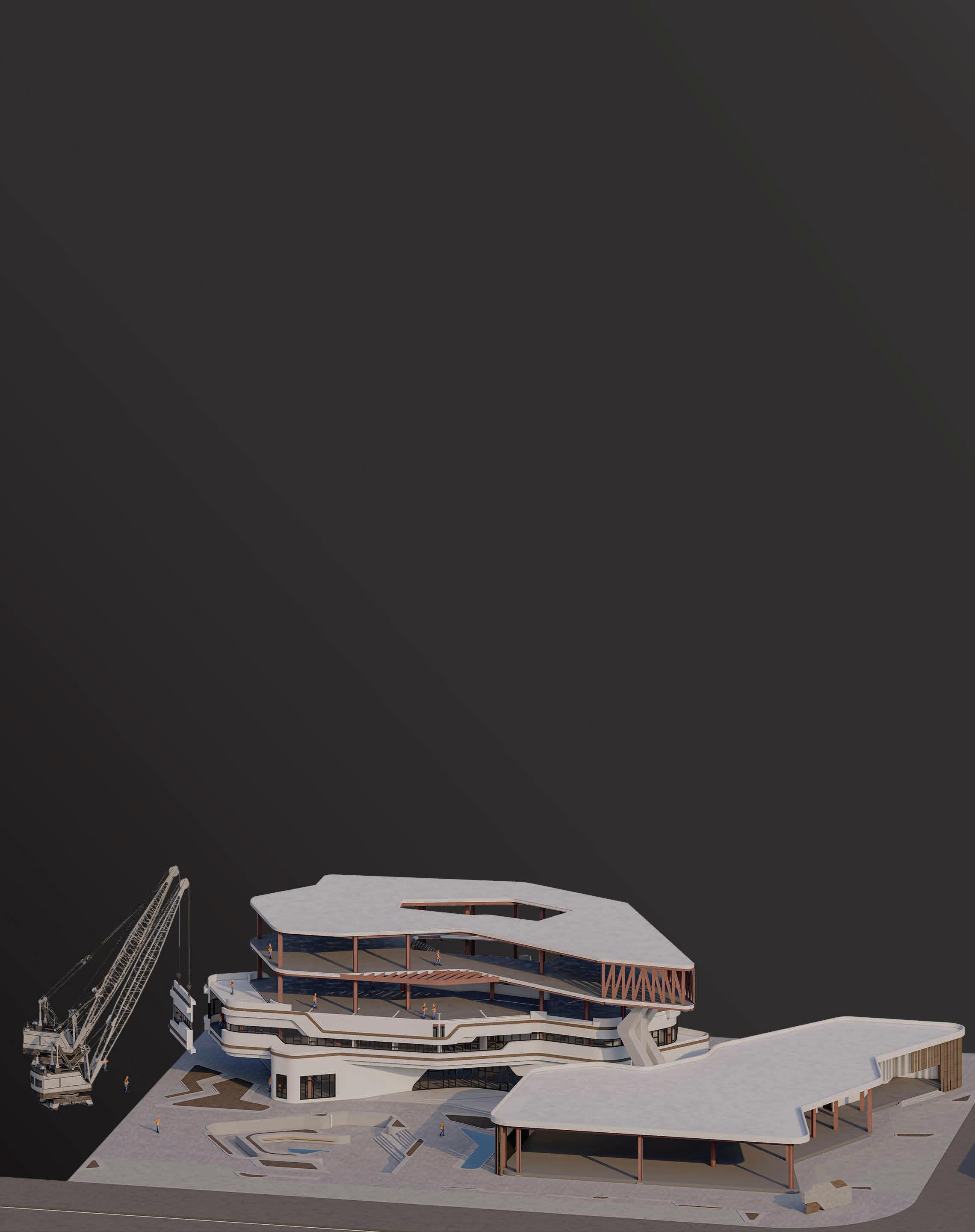 THE CONCEPT IS DEPENDENT ON FLUIDITY AND PARAMETRIC DESIGN, WHERE IT’S REFLECTED ON THE PLANS AND THE ELEVATIONS AND ALSO THE STRUCTURE THAT HOLDS THE CANTILEVER ON THE THIRD FLOOR. PRECASTED CONCRETE ON THE SHAPE OF THREE HANDS THAT HOLD EACH OTHER AND THE CANTILEVER AT THE SAME TIME.