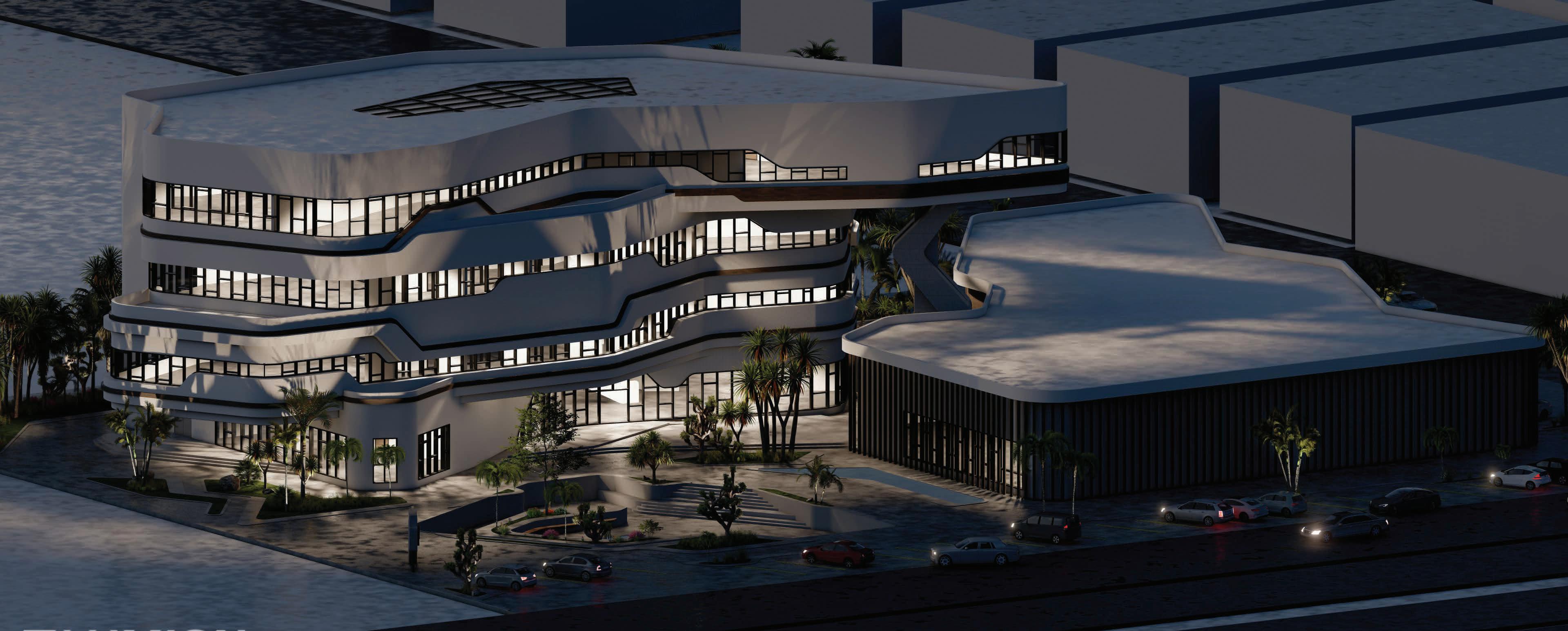 THE ARCHITECTURAL OFFICE WAS DESIGNED FOR THE SYSTEMS STUDIO, THE LAND AREA OF THIS PROJECT IS 7200 m^2. IT CONTAINS ALLOT OF DETAILS AND A COMPLETE SET OF DRAWINGS. THE PROJECT HAS TWO BUILDINGS, THE FIRST IS THE ARCHITECTURAL OFFICE, AND THE SECOND IS A RECREATION CENTER THAT JOINS THE BUILDING IN LANDSCAPING.