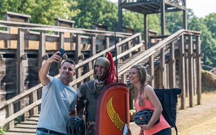 Die deutlichsten Spuren der Römer entdeckt Ihr auf Eurer Radtour am Hermannsdenkmal gleich zu Beginn in Detmold sowie am Römerlager Anreppen in Delbrück, im RÖMERPARK Bergkamen, dem LWL-Römermuseum mit Römerpark Aliso in Haltern am See und im LVR-Archäologischen Park Xanten. Einige Stätten in Wesel und Xanten sind Bestandteil des Niedergermanischen Limes und gehören mittlerweile zum UNESCOWeltkulturerbe. Aber auch die vielleicht nicht direkt mit dem bloßen Auge erkennbaren Zeichen der römischen Belagerung, wie z. B. das 2011 entdeckte Römerlager in Olfen oder das Uferkastell in Lünen, werden anhand von Informationstafeln an der Route für Euch sichtbar und lebendig gemacht. Begebt Euch auf eine Zeitreise in eine bedeutende Epoche europäischer Geschichte!