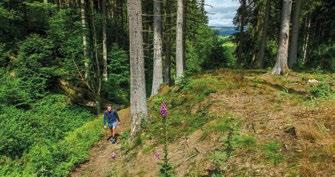 Naturerlebnisse. Ab dem Wanderparkplatz „Langer Berg” führt der Weg über die Waldroute mit ihren herrlichen Panoramen – und hält lauter Überraschungen für Entdecker bereit. Ob Baumtelefon, Xylofon oder befahrbarer Hochsitz, kleine und große Naturliebhaber sammeln an fünf Erlebnisstationen spannende Eindrücke.