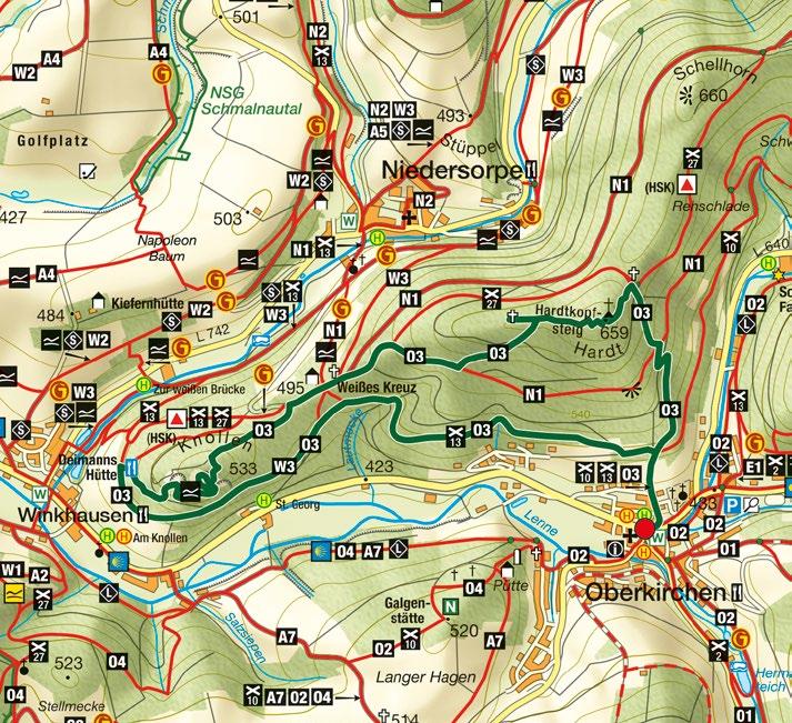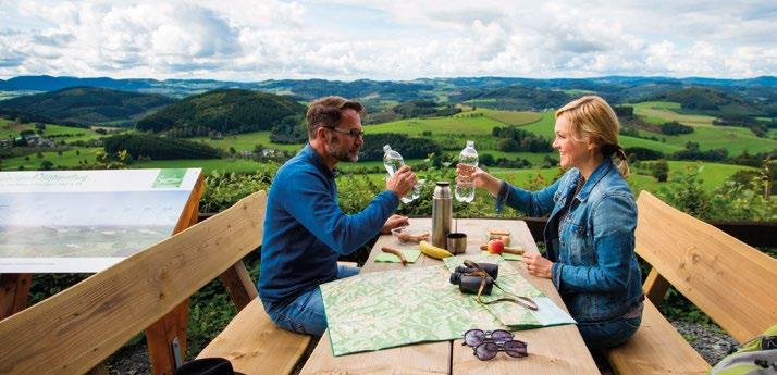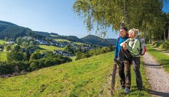 Die Sauerland-Wanderdörfer, das sind Brilon, Diemelsee, Eslohe, Hallenberg, Kirchhundem, Lennestadt, Medebach, Olsberg, Schmallenberg, Willingen und Winterberg. Prämierte Fernwanderwege wie der Rothaarsteig, die Sauerland-Waldroute und der Sauerland-Höhenflug, aber auch preisgekrönte Mehrtagesrouten voller Naturerlebnis überspannen die Region. Auch für Tages- oder Halbtagestouren haben die SauerlandWanderdörfer etwas zu bieten, die Sauerland-Spuren. Dies sind kürzere Rundwege, die über verträumte Pfade und auf naturnahem Untergrund zu reizvollen Erlebnisorten führen.