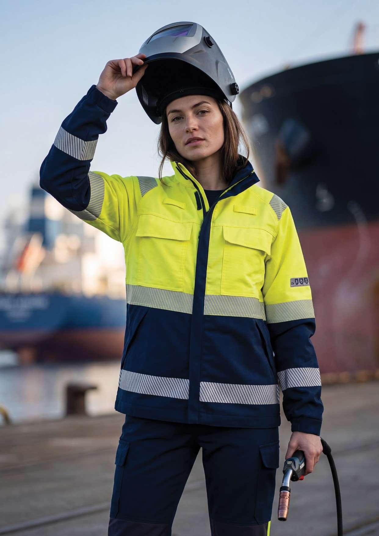 Tkani na III: 90% nyl on / 10% spandex – 245 g/ m² EN ISO 13688 EN ISO 20471 Cl ass 1