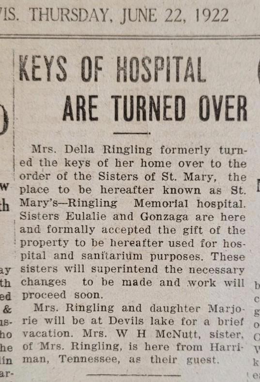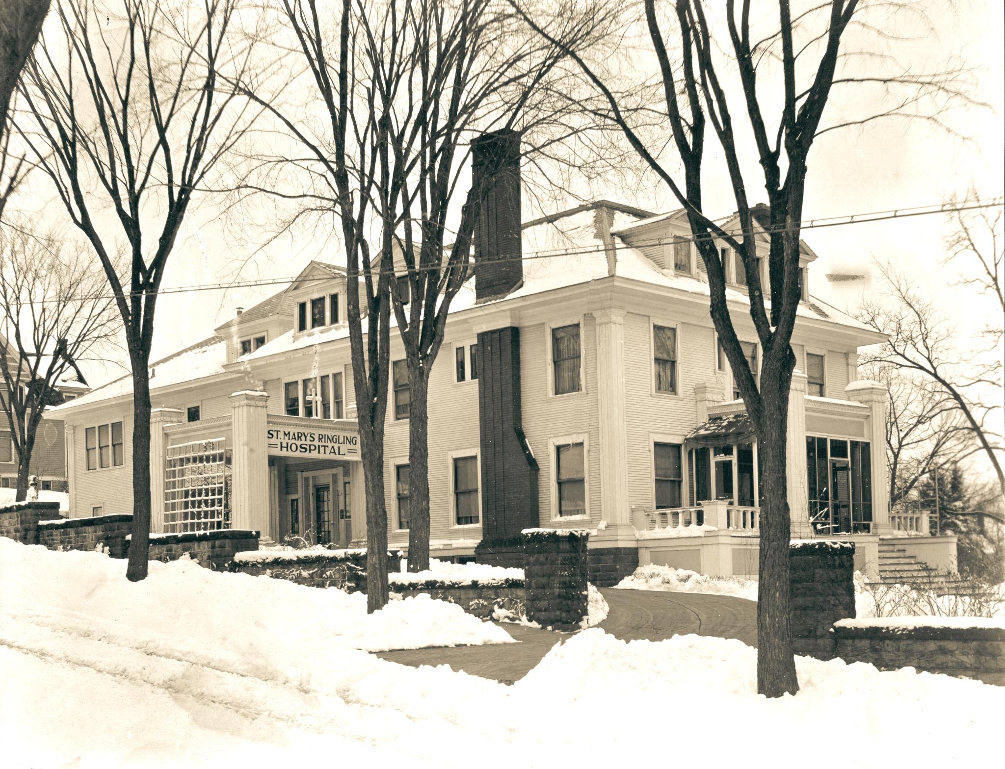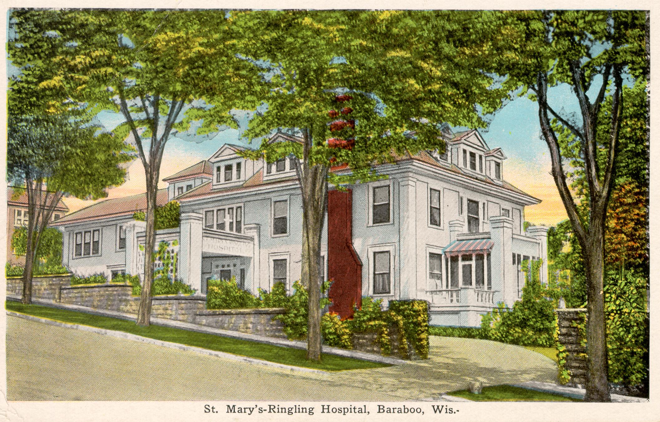 The Sisters of St.Mary in St. Louis began in November of 1872 when Mother Odilia Berger and four sisters arrived in St. Louis from Bavaria to begin their work caring for the sick. Their first hospital was dedicated in St. Louis in 1877. Over the next forty years four more hospitals were added in Missouri, one in Illinois and in 1912 St. Mary’s Hospital in Madison was established. No doubt the proximity of the Madison hospital had some influence on the decision of the Sisters to expand to Baraboo. The cachet of the Ringling name might also have helped.