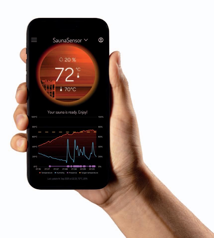 Asenna langaton sensori WiFi-yhteydellä varustettuun saunatilaan ja yhdistä se ilmaiseen MyHarvia 2 -sovellukseen, jolloin näet heti reaaliaikaista tietoa saunasi tilasta. Sovelluksen kautta voit seurata lämpötilaa, ilmankosteutta ja käyttöä missä ja milloin tahansa. Sovellus myös arvioi, milloin sauna on valmis, ja ilmoittaa sinulle oikean hetken mennä löylyihin.