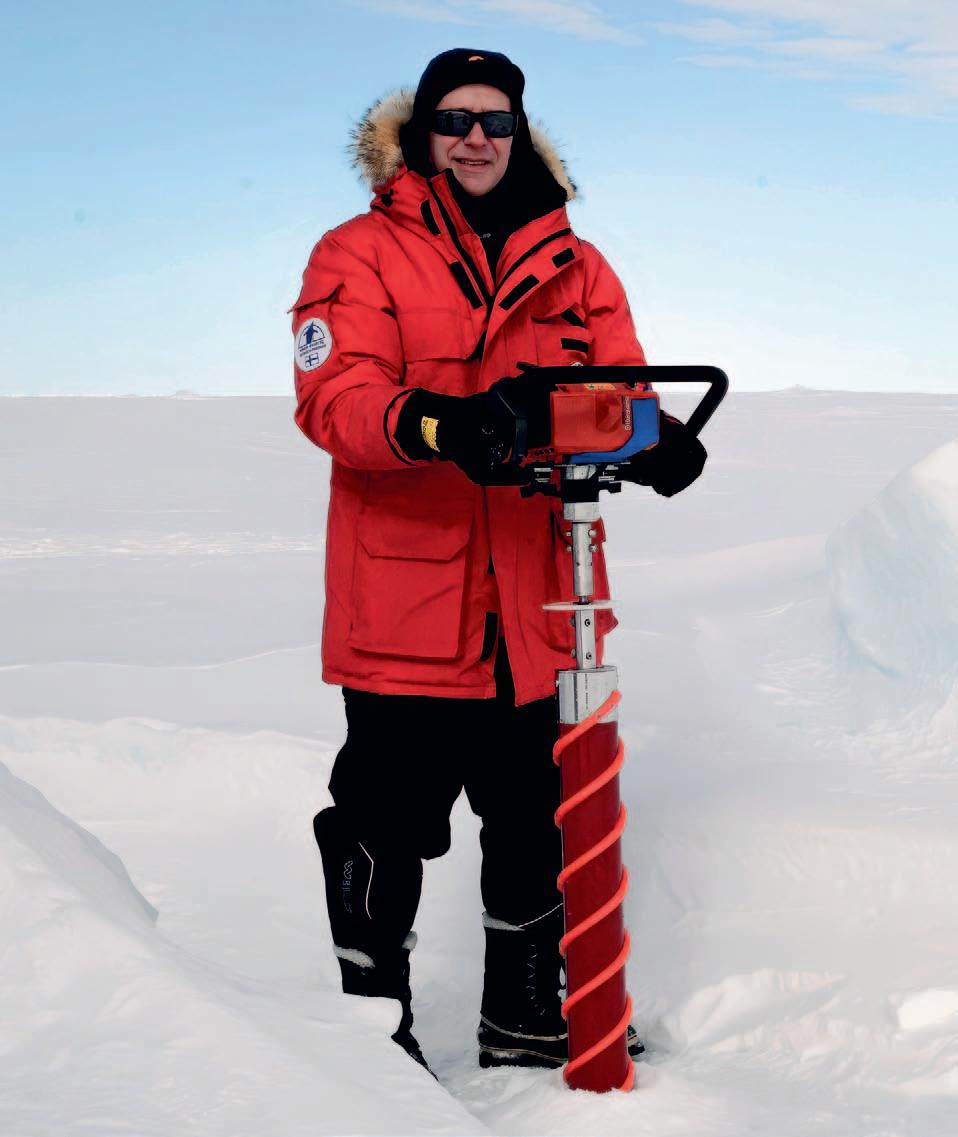 Jäätutkija Jukka Tuhkuri saunoi tutkimusmatkalla Etelämanterella.