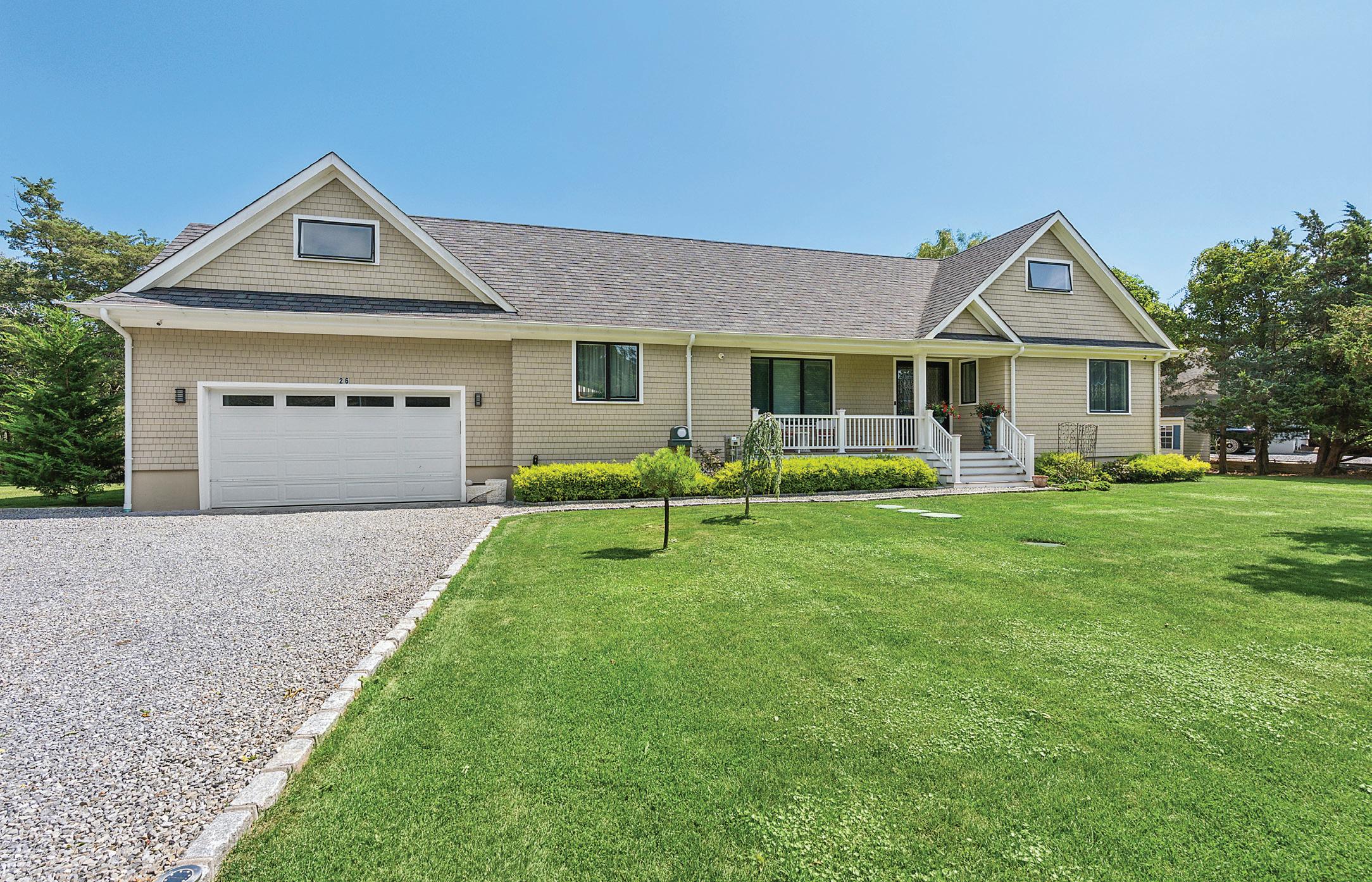 In a quiet coastal enclave, find a rare opportunity to enjoy modern construction with timeless character. Set on a generous 1.20-acre lot, the property offers room for a pool and potential for future expansion. Whether you’re seeking a weekend retreat or a year-round haven, this home is perfectly positioned for peaceful living with easy access to NYC. Arrive at this charming single-story home, built in 2019, featuring a covered front porch and classic cedar shake siding. Inside, you’ll find approximately 2,010 sq. ft. of bright, open-concept living space with hardwood floors, oversized windows, and sliding glass doors that open to the rear patio. The custom kitchen boasts premium appliances and a large center island with seating, flowing seamlessly into the great room with vaulted ceilings, a dining area, and a spacious living room. The spacious and private primary suite, featuring direct access to the rear patio, is thoughtfully situated on one side of the home. On the other side, two additional bedrooms, two modern bathrooms, and a laundry room complete a well-balanced and functional layout. The backyard unfolds into a peaceful expanse of lawn bordered by mature plantings, with ample space for a pool. A sun-drenched rear patio offers the perfect setting for long summer days, while the attached two-car garage adds convenience and additional storage. The bay is moments away at the end of Tuthill Lane and just minutes from charming Westhampton Beach Village, ocean beaches, farmstands, and local marinas. This lush location invites a lifestyle of barefoot luxury and supports a wide variety of plants and bird life. Whether you’re catching a sunset by the bay, enjoying a seaside dinner, or hopping the train back to the city, this Remsenburg gem is your gateway to relaxed Hamptons living.