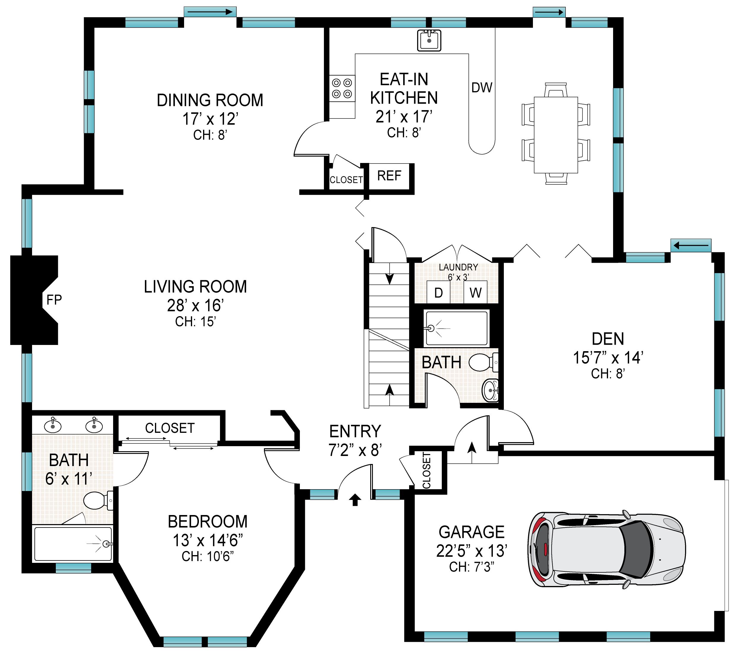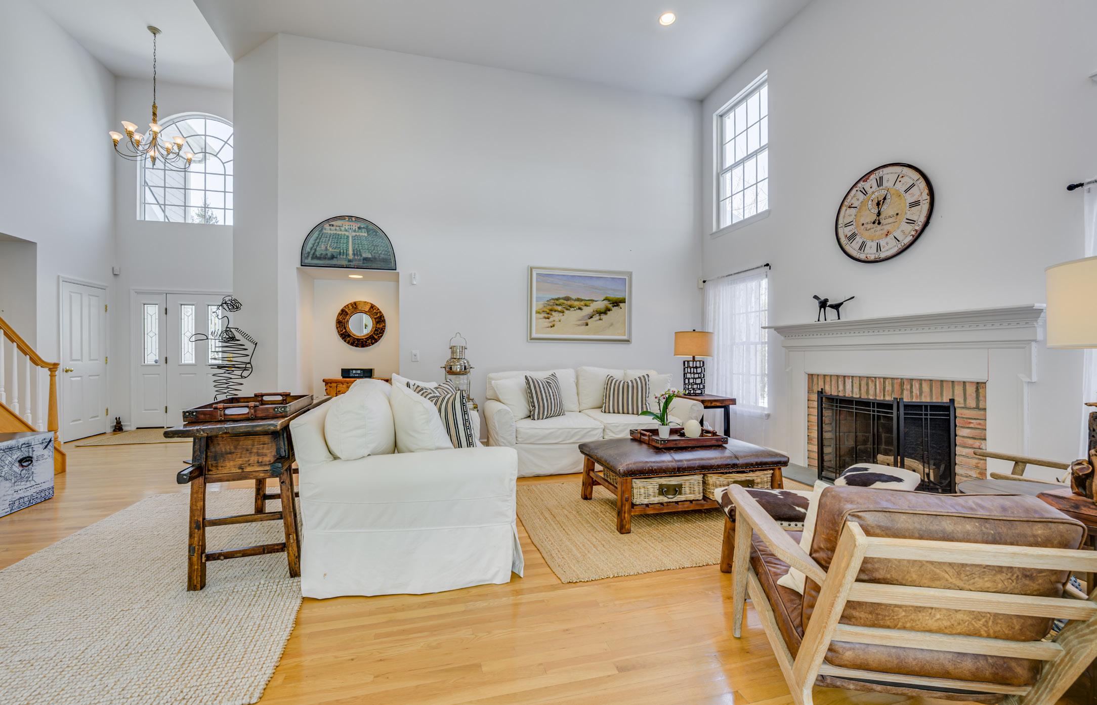 • Double-height great room with wood-burning fireplace