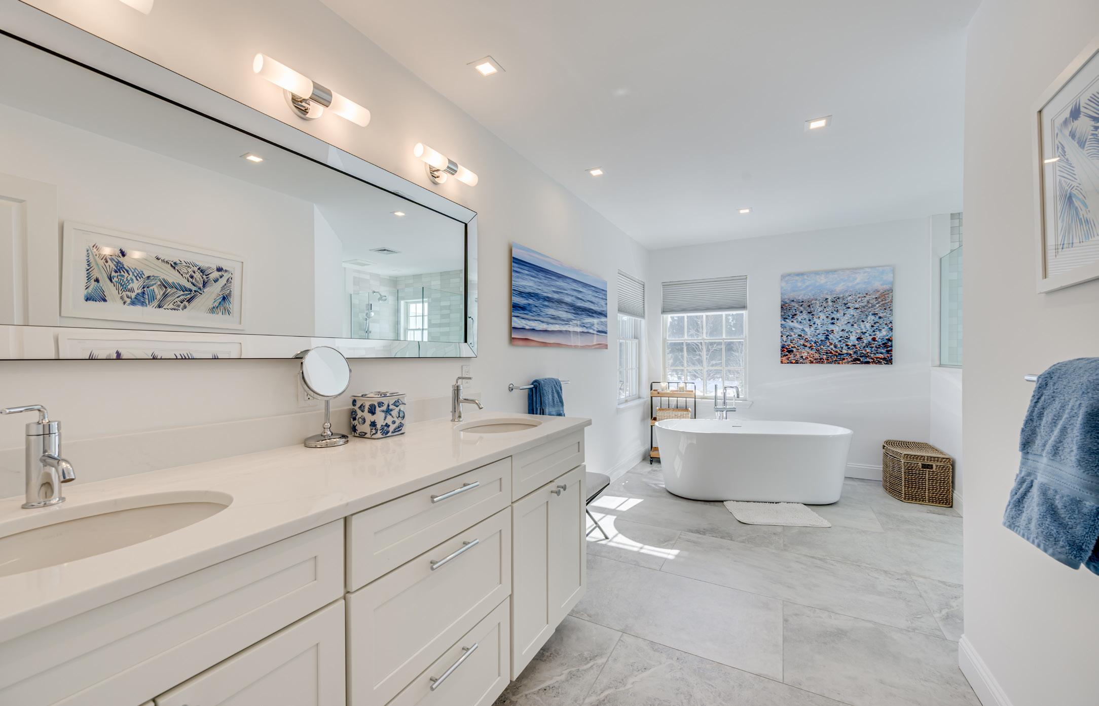 • Primary bedroom with walk-in closet and en suite bath with freestanding tub and walk-in shower