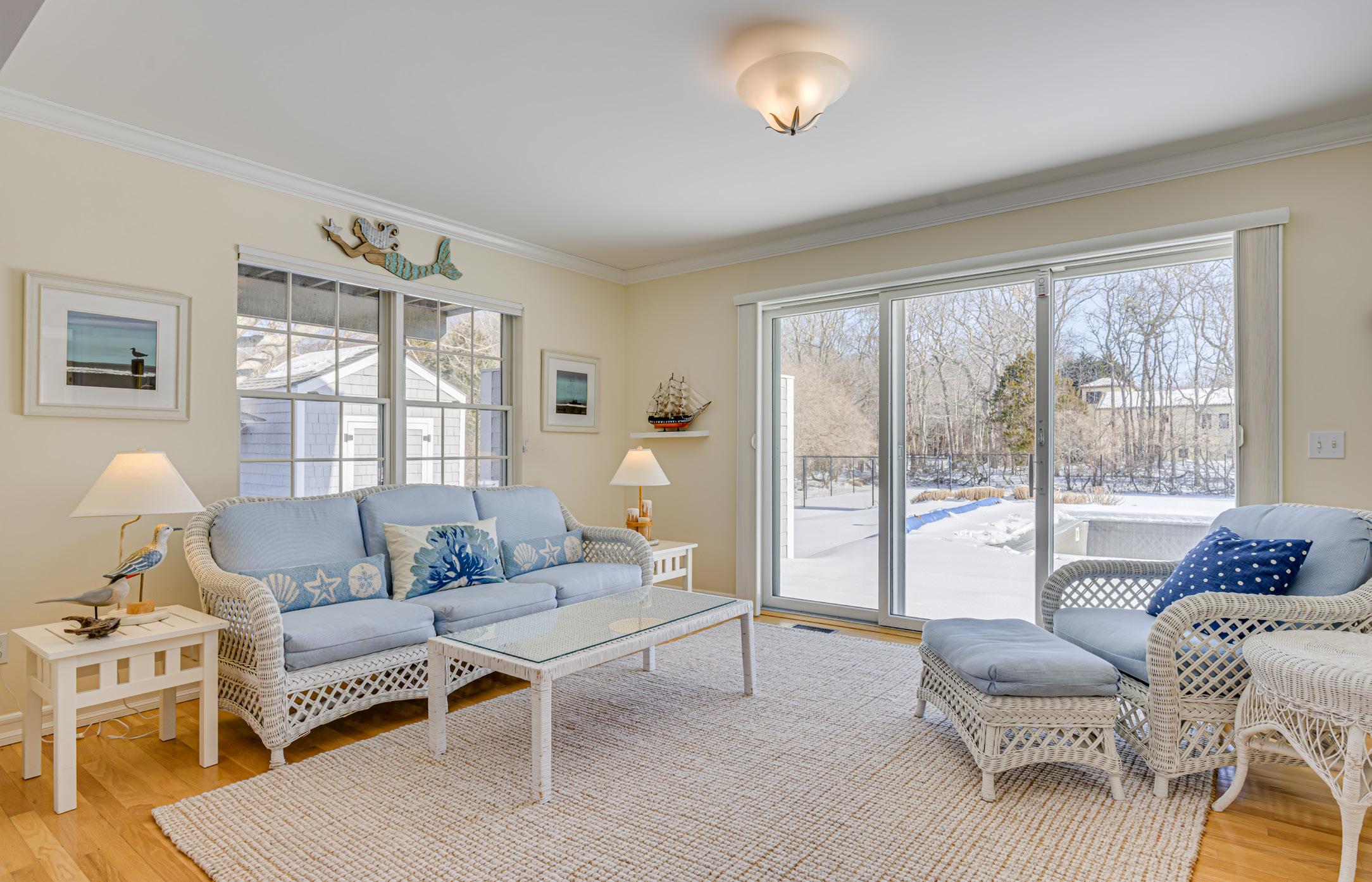 Features: Heated pool, outdoor shower, tennis court, deck, fireplace, outdoor dining with retractable awning, mature landscaping, close to beach