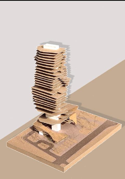 The project proposes an urban park enveloping a high-rise system. Natural systems are integrated into a tower to create a holistic self-sustainable ecosystema tower of flux as a catalyst for change. The urban park offers recreational & learning facilities for the community. Biodiversity & natural water resources are carefully preserved on site, and the land is protected from haphazard horizontal urbanization.