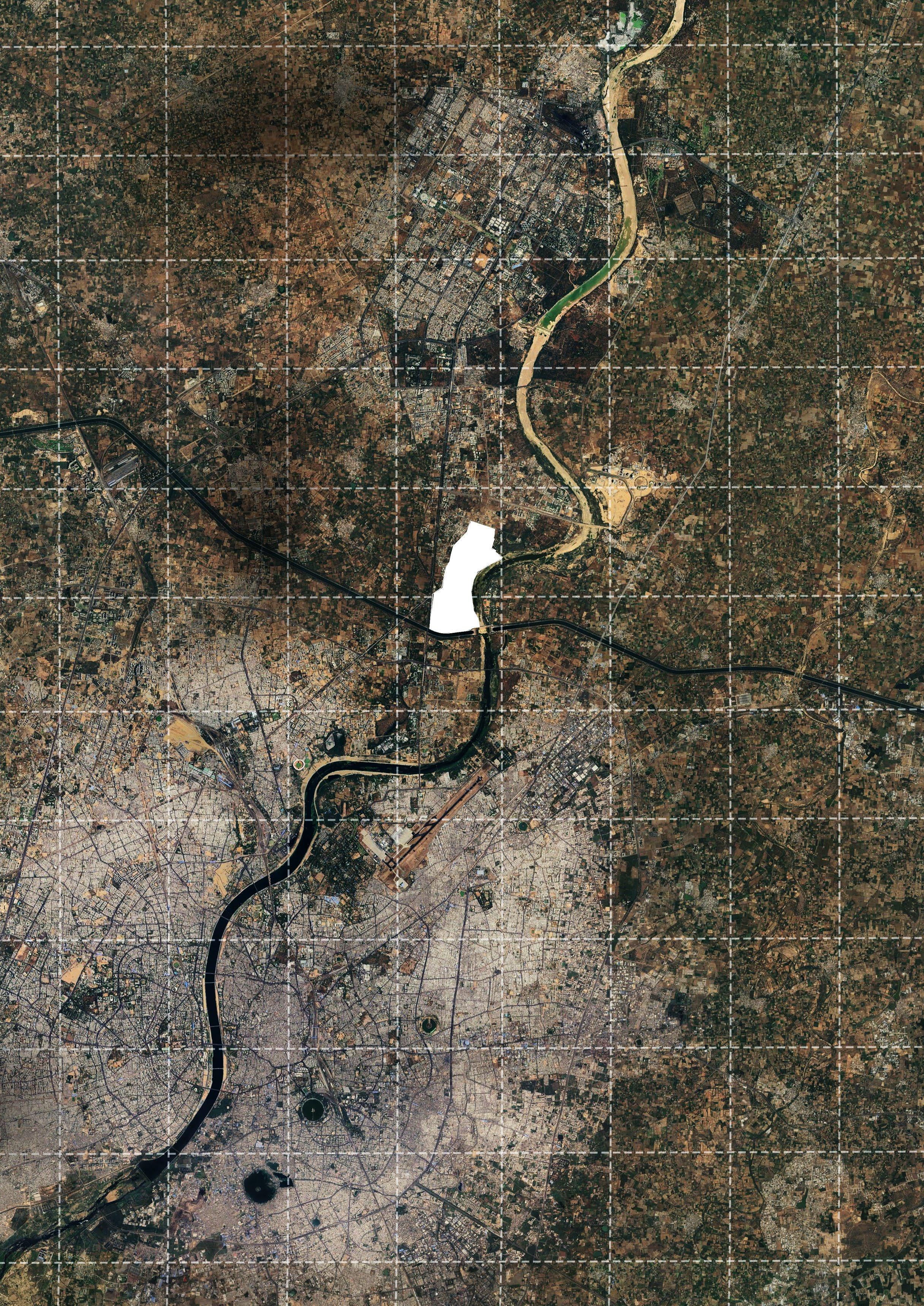 The entire park is imagined as a wild-scape, taking over the currently inaccessible, invasive prosopis juliflora laden water edge. To scale this vast landscape park, a series of urban installations, inspired by Tschumi’s follies from Paris are arranged in a grid.