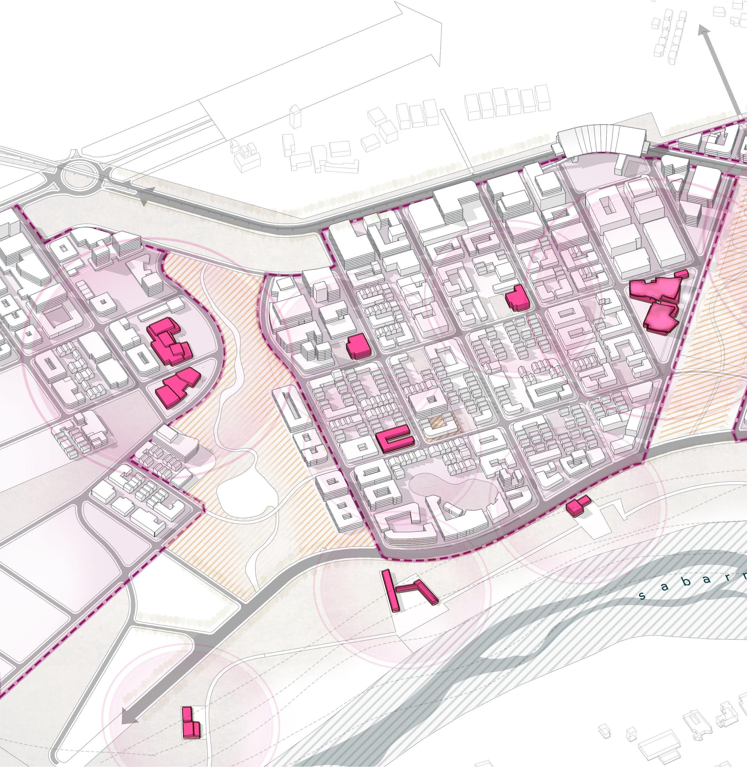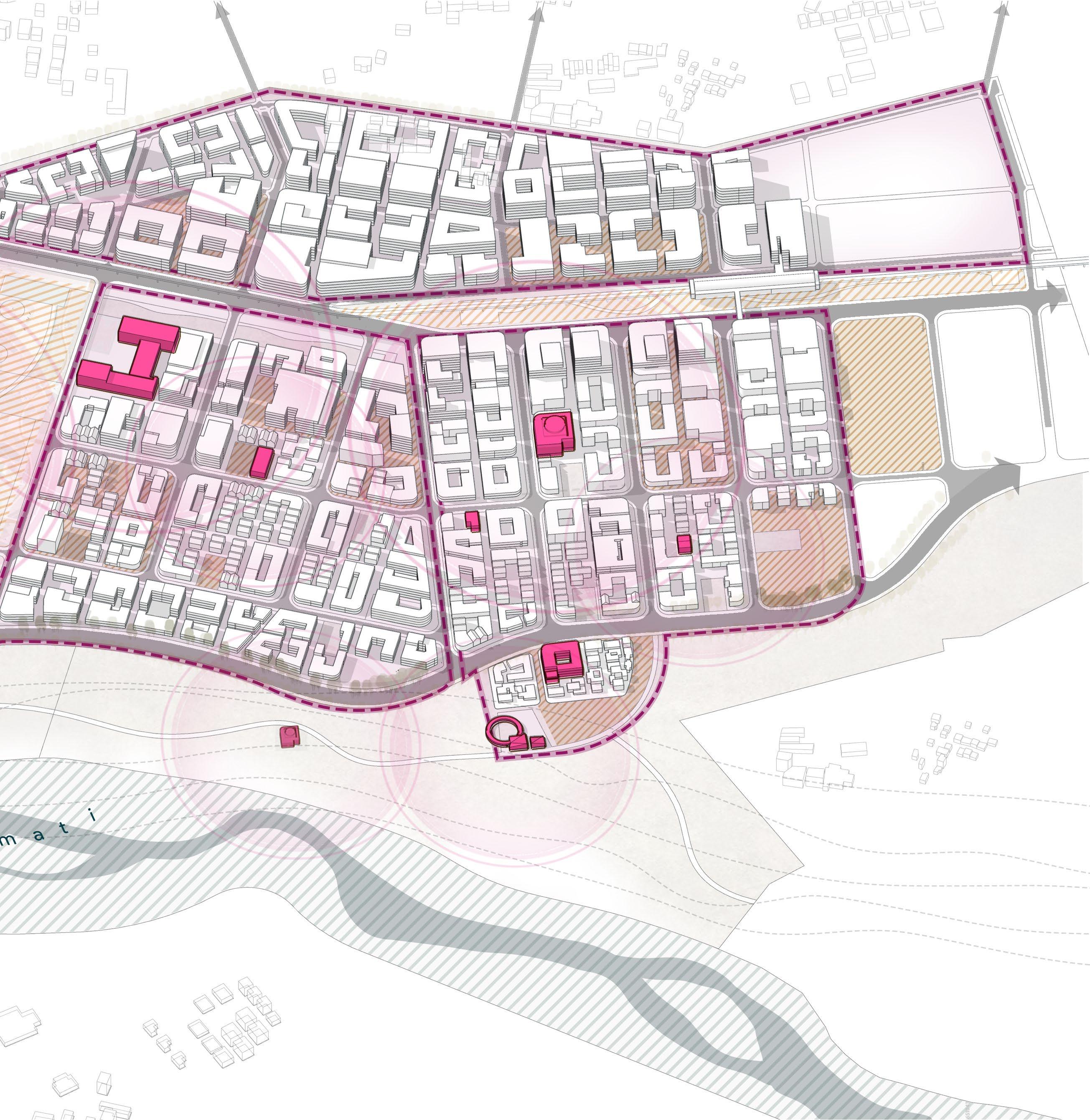 Strategically distributed, these anchors are imagined to ensure that essential services, cultural amenities, and social infrastructure are accessible to all, creating a collective of almost self-sustained neighborhoods while also helping the master plan to be realized as a collective whole.