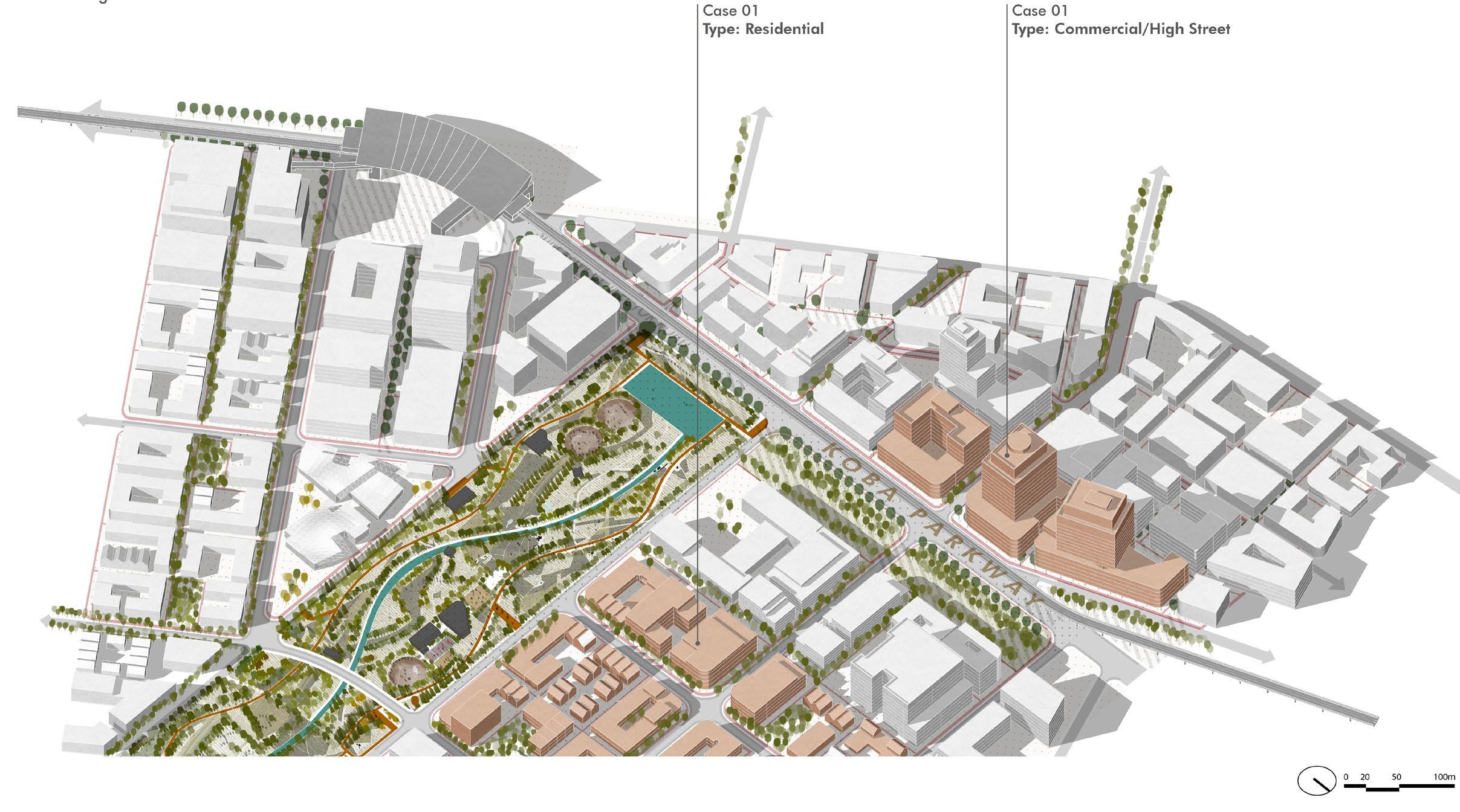 and infrastructural networks of the master plan. This warrants a deeper exploration of the nuanced urban design considerations behind these block typologies,