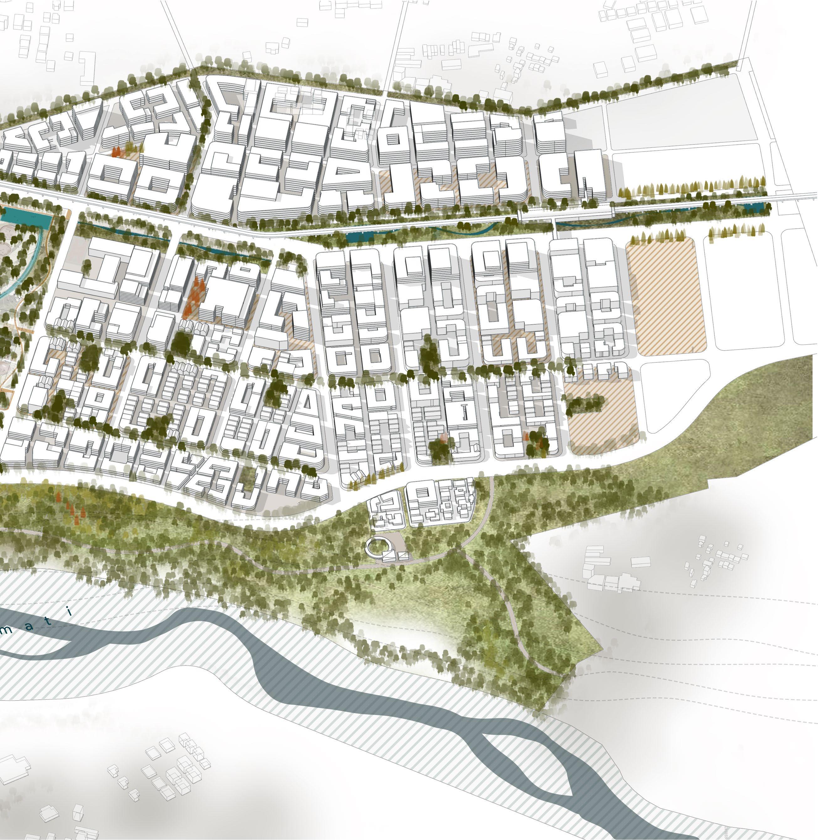 The studio introduces a systems-based approach to climate-resilient master planning which emphasizes understanding and addressing the interconnectedness of environmental, social, and economic systems in urban development. By considering the complex interactions between climate factors, natural resources, infrastructure, and human activities, this approach enables urban designers to design cities that are adaptive to changing climate conditions. It incorporates various frameworks to mitigate the growing challenges of urban expansion in our cities in a case of a greenfield development using a Town Planning Scheme (TPS) mechanism when there are multiple land parcels owned by different stakeholders and is directed by the urban development authorities under a Special Purpose Vehicle with specific goals.