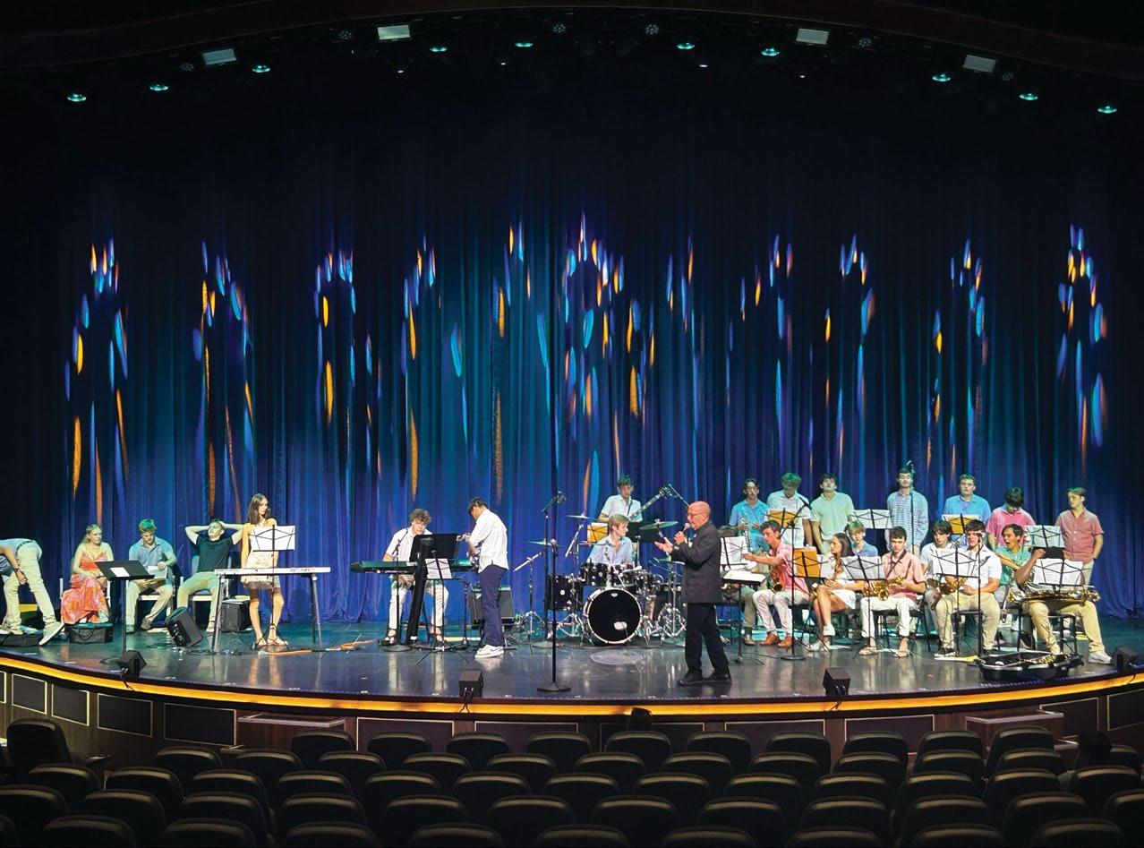 The Jazz Ensemble and Jazz Combo performed aboard Icon of the Seas during a four-day cruise to the Bahamas. Students gained valuable hands-on experience working with professional sound and lighting technicians, and Upper School student Luke Nguyen had the opportunity to run the theater’s soundboard himself.