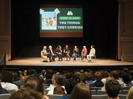 Upper School students deepened their study of Tim O’Brien’s The Things They Carried through a powerful panel discussion. The Upper School English Department and the Alumni Office partnered to host Country Day community members who shared their lived experiences from the Vietnam War era, providing perspectives that enriched students’ understanding of this complex chapter in history. Speakers included combat veteran Jake Coakley, parent of alumni and current grandparent; Anne (Sognier) Murray ’69, sister of fallen soldier John Sognier ’63; Candice (Aaron) English ’07, a historian who studied the war’s memorialization; and Lisalan Thai, a Vietnamese refugee and current grandparent. They shared their stories with 10th- and 11th-grade students, answered thoughtful questions, connected personal narratives to themes in the text, and helped students see how storytelling preserves the realities of those who lived through the conflict.