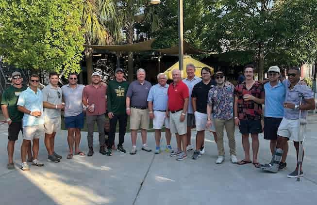 Pictured from left: Blaine (Westerfield) Goodwin, Ross Kaminsky, Jason Barker, Josh Safer, Brannon Graham, Matt Gann, Karen (Lubeck) Smith, Rob Sparks, Susan (Bracker) Bergethon, Fitz Haile, Kellie (Hardie) Steedman, Jack Woodall, Dana (Kulbersh) Bernath, Virginia (Barrow) Hills, Catey (Kettles) Simmons, Rachelle (James) Gregory, Leslie (Javetz) Walcoff, Holly Metts, Hillary (Faulk) Coslick, Jerry Reeves, Courtney Loadholt, and Rob Martin. Not pictured: Kathryn (McCallar) Matthews
