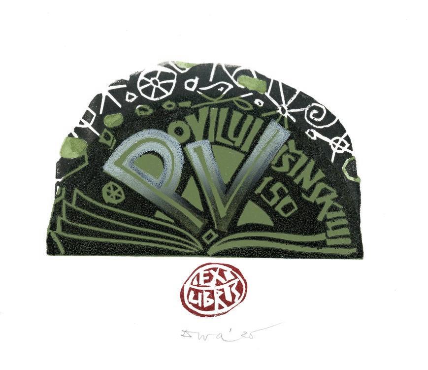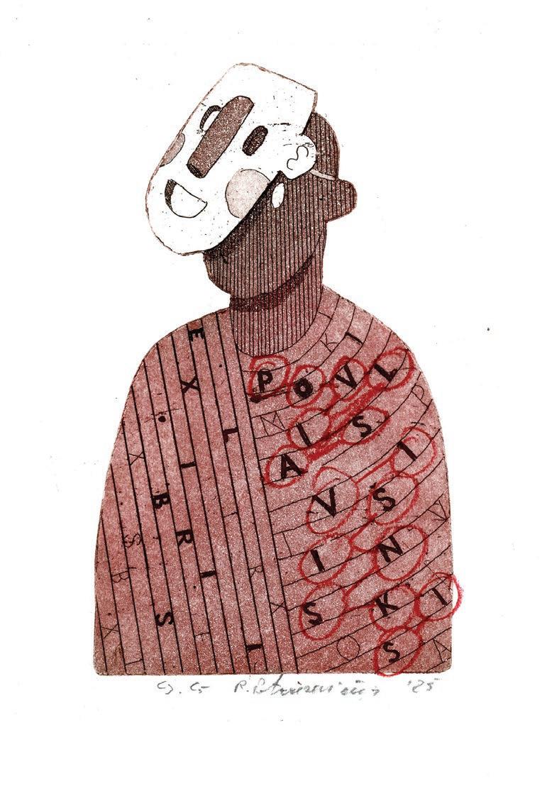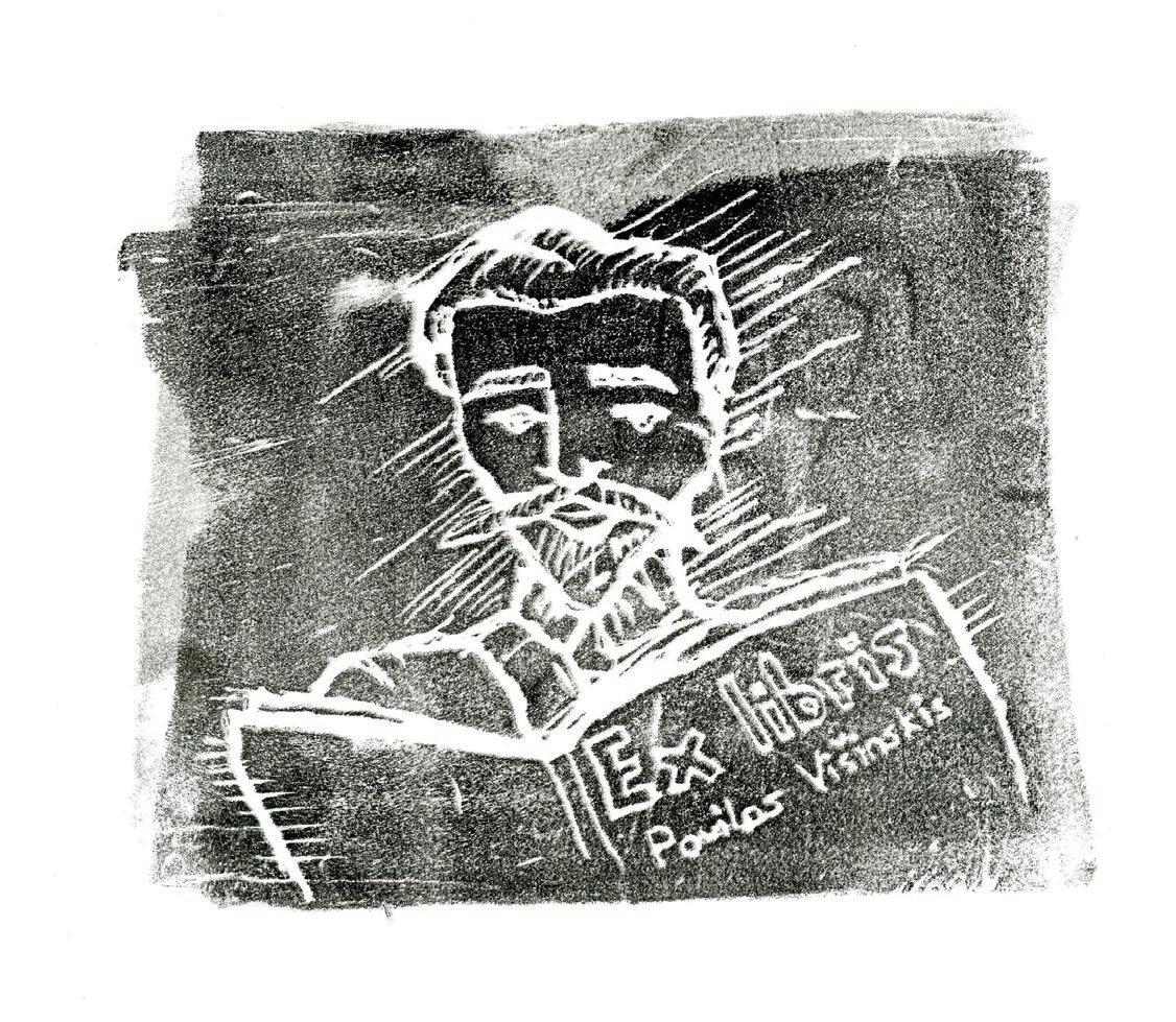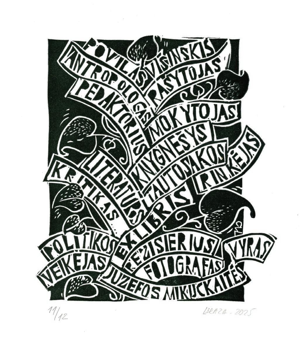 Mindaugo Petrulio ekslibrisuose Povilo Višinskio mintys sklando elegantiškos kaligrafijos erdvėse, sukeldamos emocijų bangas, kurios nuskuba prie Rasos