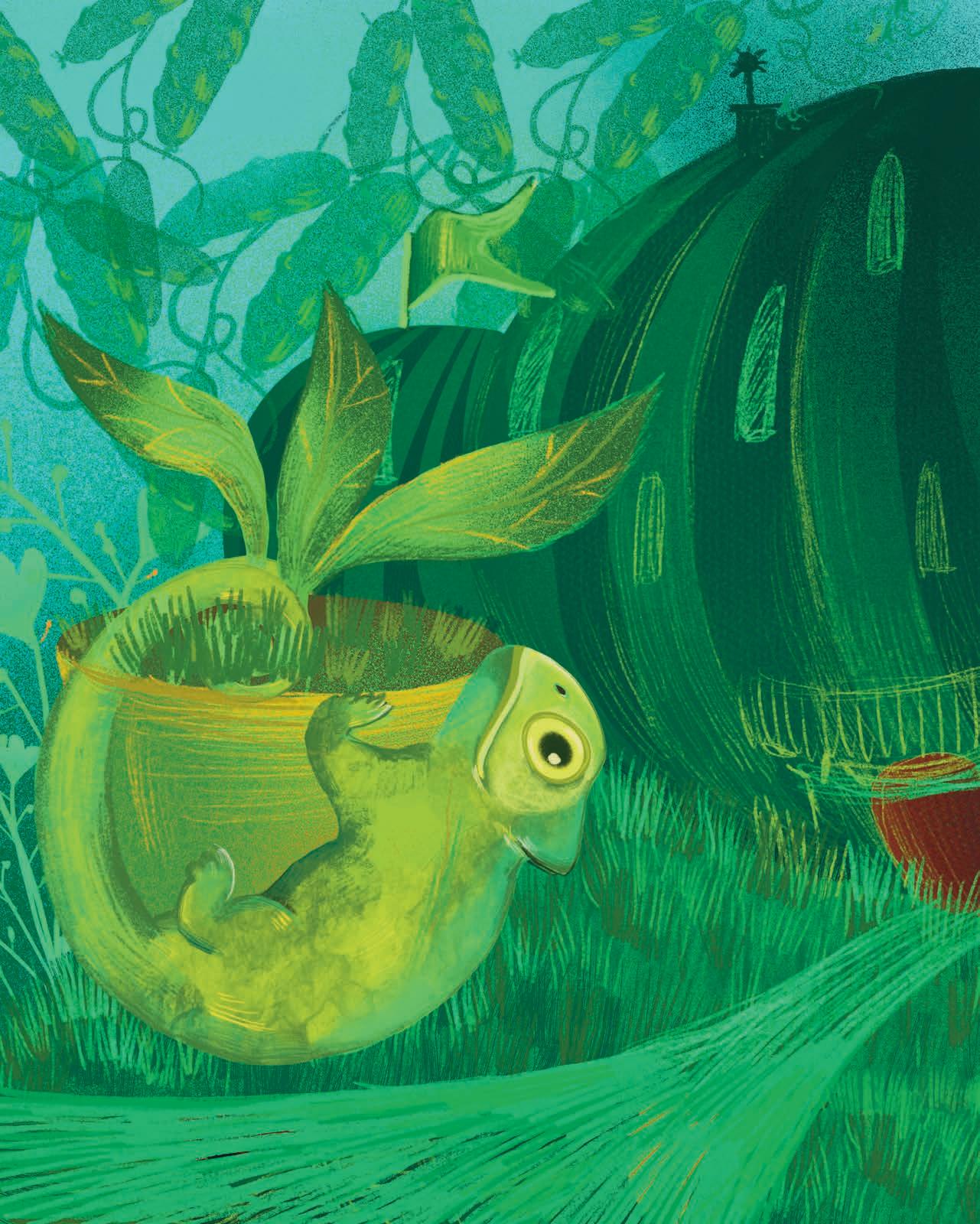 My name is Zagi. My fur is green and soft. My eyes are as blue as the sky. I am as tall as you. I live far away. Come, I’ll show you!