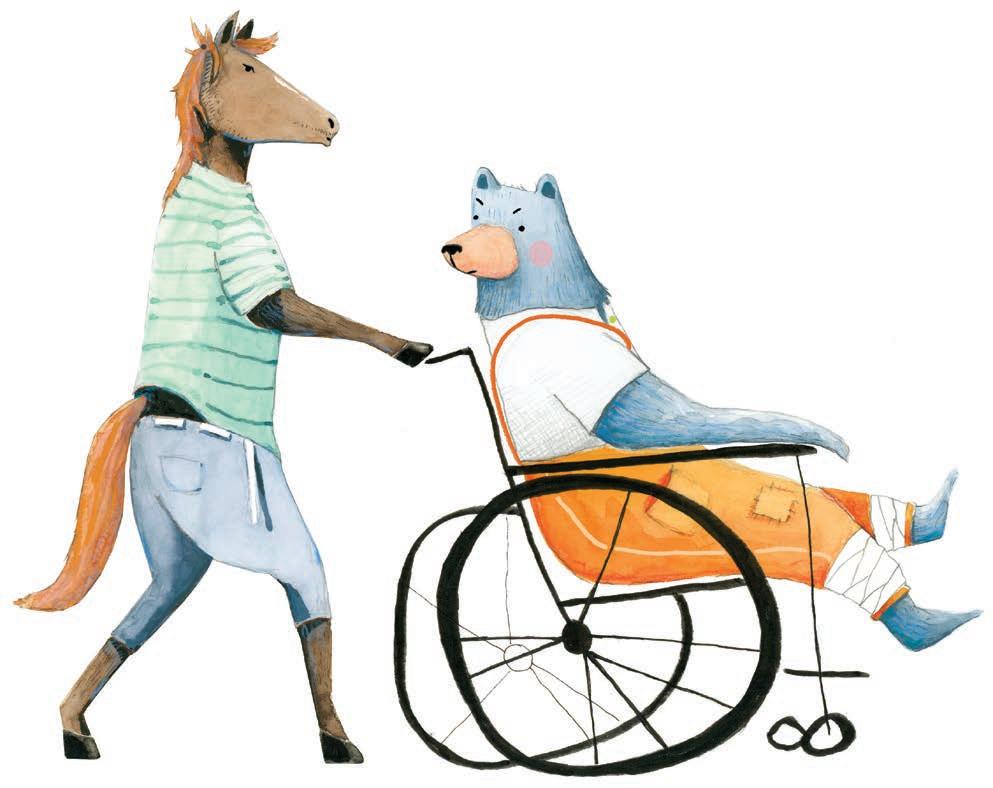 ‘You must need some assistance, surely!’ said a horse, trotting up beside him. He grabbed the wheelchair and gave it a swift push.