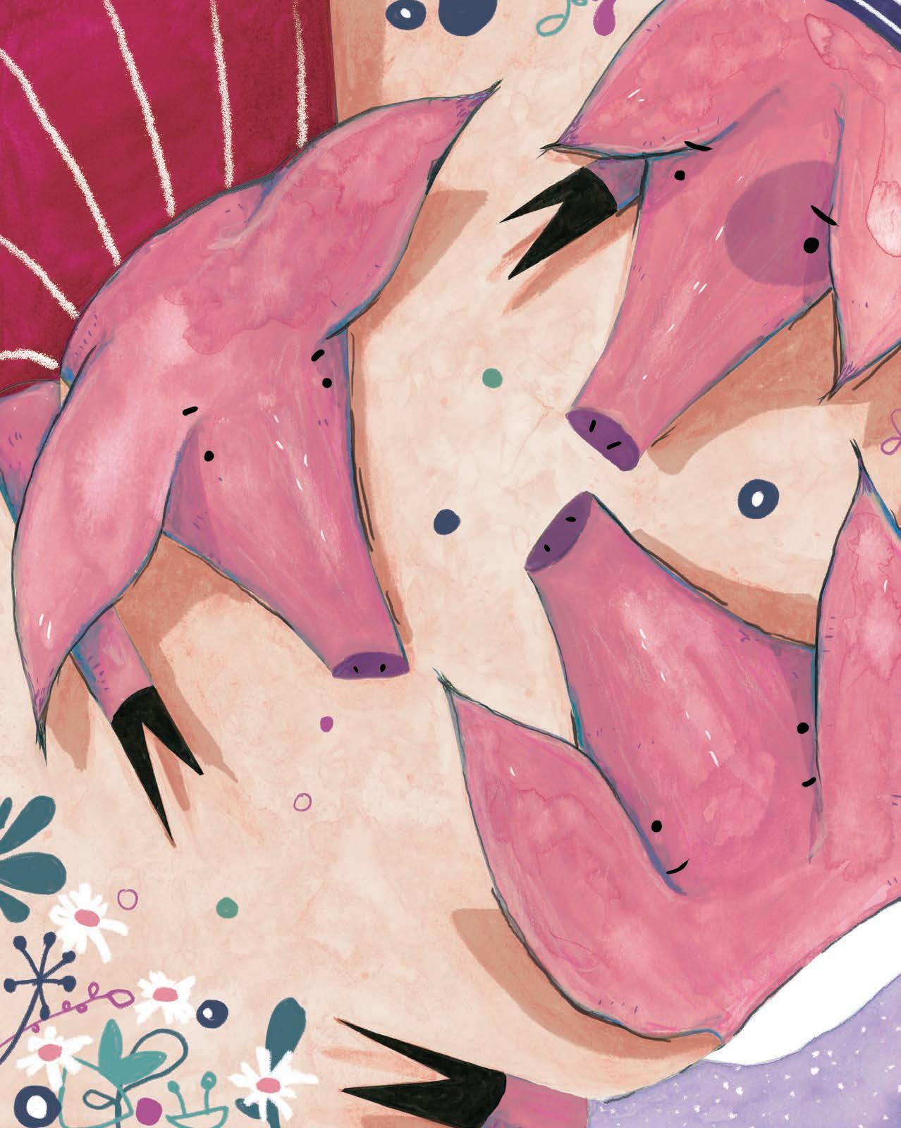 After a while, the middle pig asked, ‘Do your paws hurt already?’
