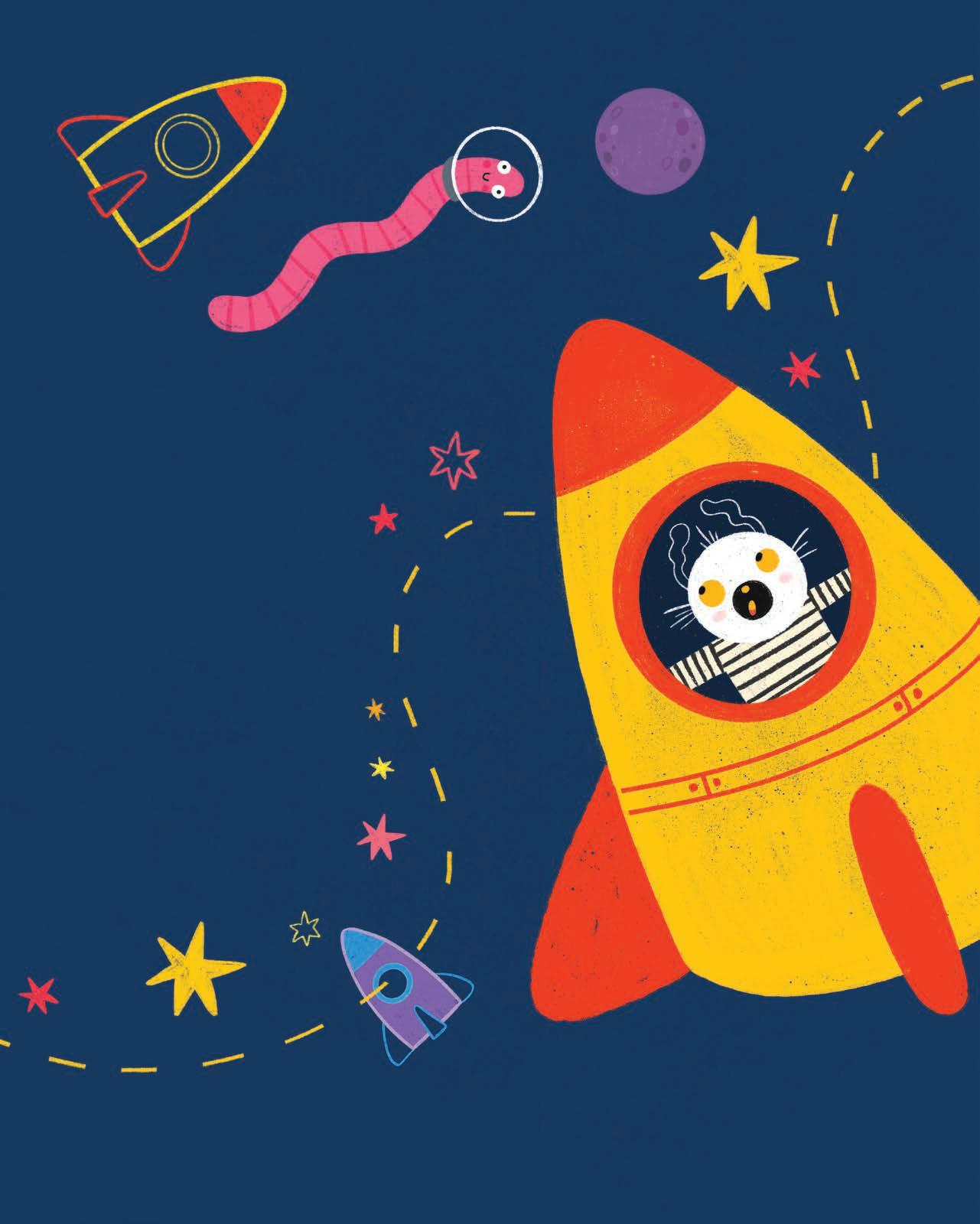 Vienos raketos – smailios kaip strėlės, kitos –apvalios kaip lėkštės. Jomis skrenda padarai iš visų visatos kampelių. Vieni – gauruoti, kiti – žvynuoti.