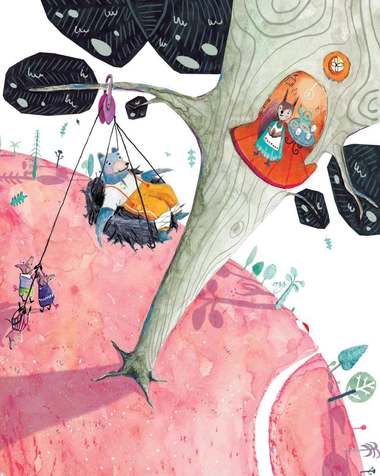 – Sveikas atvykęs, mano mielas meškiuk! – apsidžiaugė tetulė voverė. – Pakviesčiau tave arbatos, bet žinau, kad nepasieksi mano drevės...