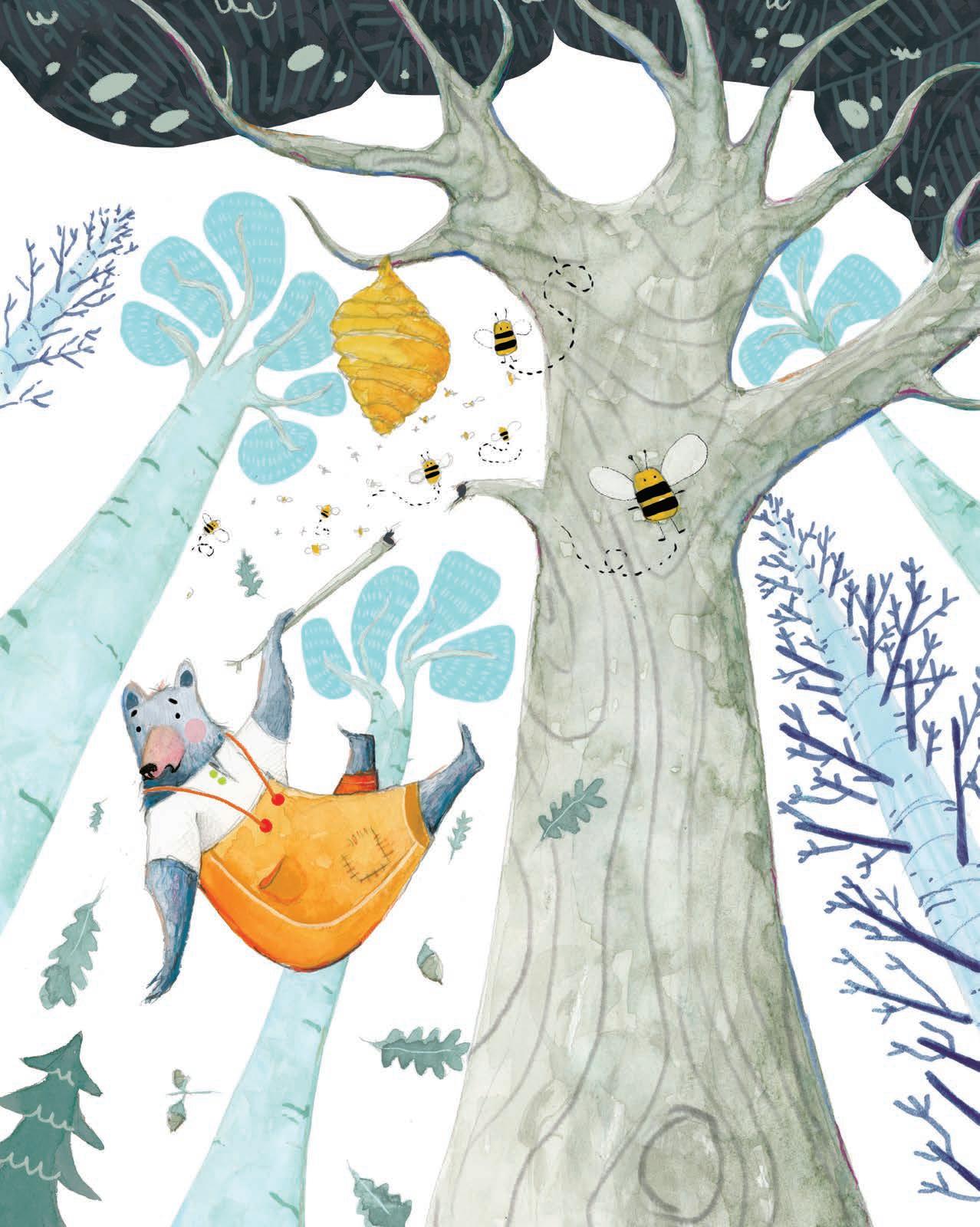 Kartą meškinas iškrito iš seno aukšto ąžuolo. Norėjo pasmaguriauti laukinių bičių medumi, bet netyčia paslydo.