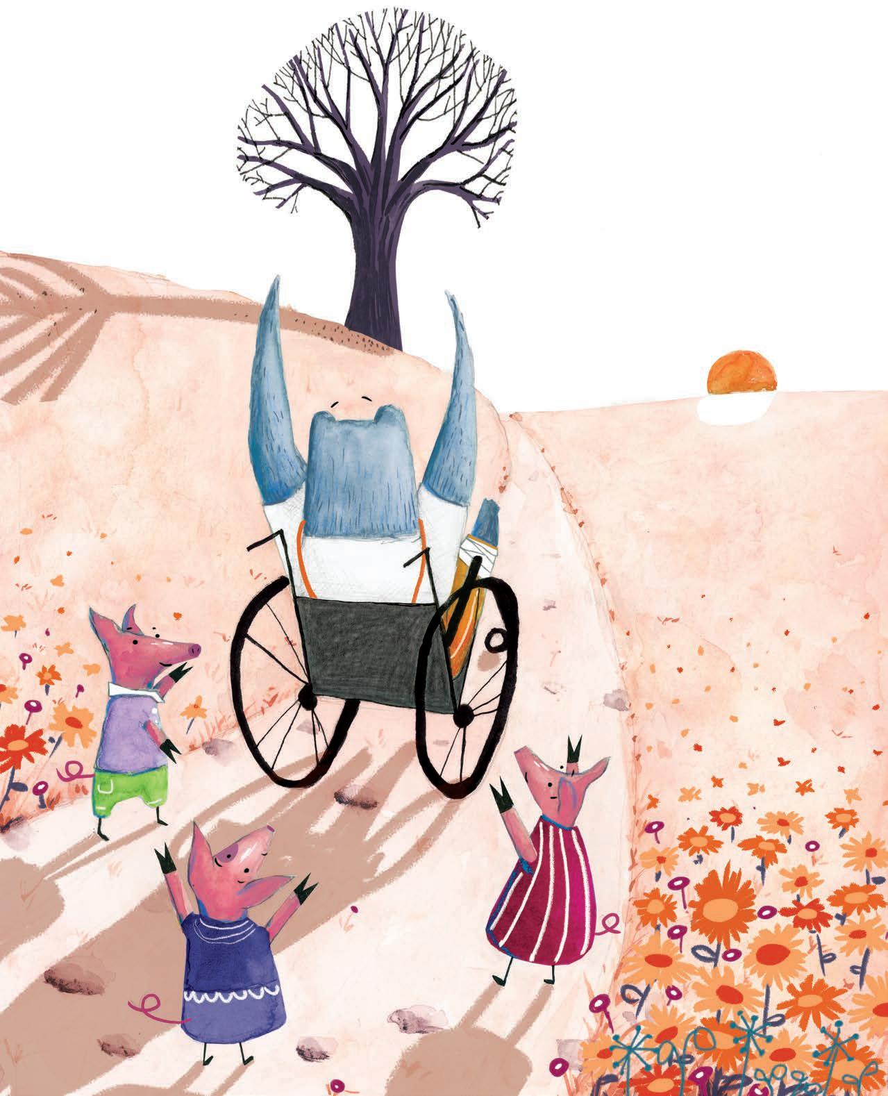 Meškinas sukaupė visas jėgas ir ryžtingai paskutinį kartą pastūmė vežimėlį į priekį. Kai be jokios pagalbos pasiekė tikslą, džiaugsmingai sušuko: