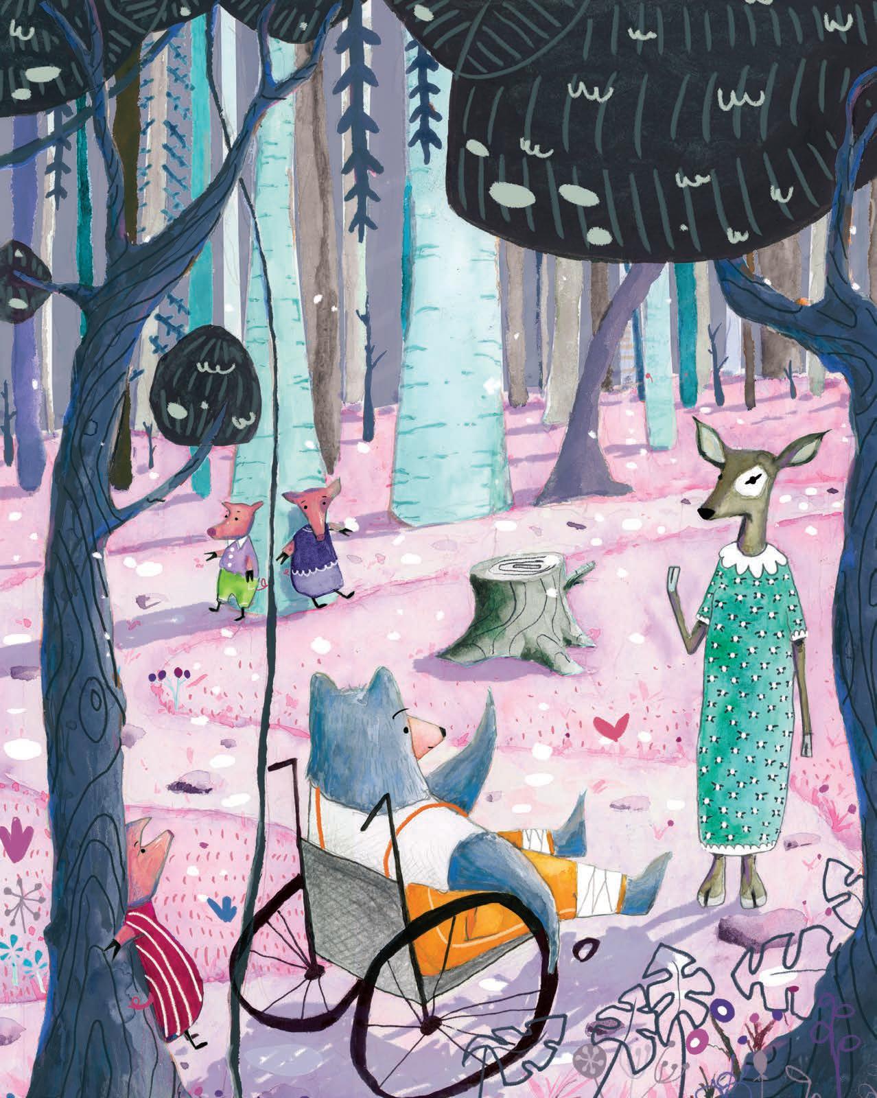 „Vargšelis... – pagalvojo zuikis, išvydęs keliautoją vežimėlyje. –Kaip jam sunku! O tie tingūs paršeliai tik dairosi aplink, užuot jam padėję!“
