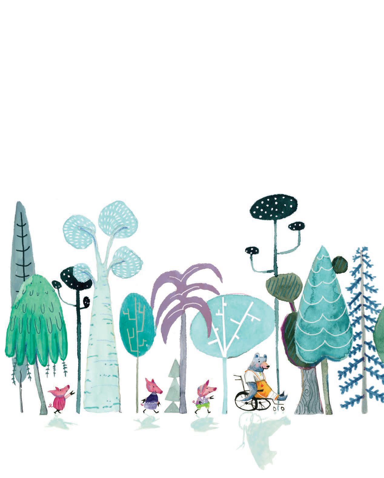 – Gal ir galėtumėt, – svarstė meškinas. – Kai pavargs letenos, būtų puiku, jei padėtumėt stumti vežimėlį. Noriu aplankyti tetulę voverę – ji gyvena labai toli. – Žinoma! – apsidžiaugė paršeliai. – Mielai tave palydėsime!