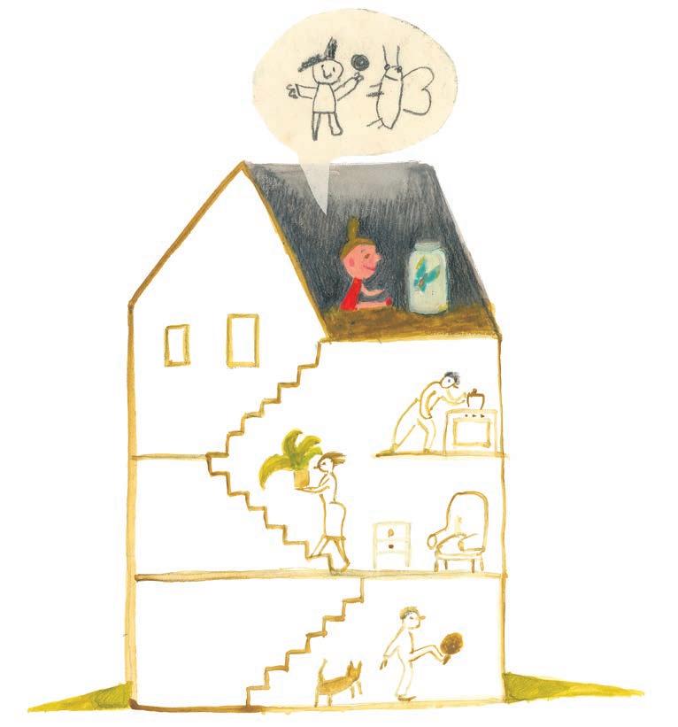 – Nebijo, nes aš nustojau jį gaudyti, – atsakė Liusė. –Nori, parodysiu, ką nupiešiau? – Noriu.
