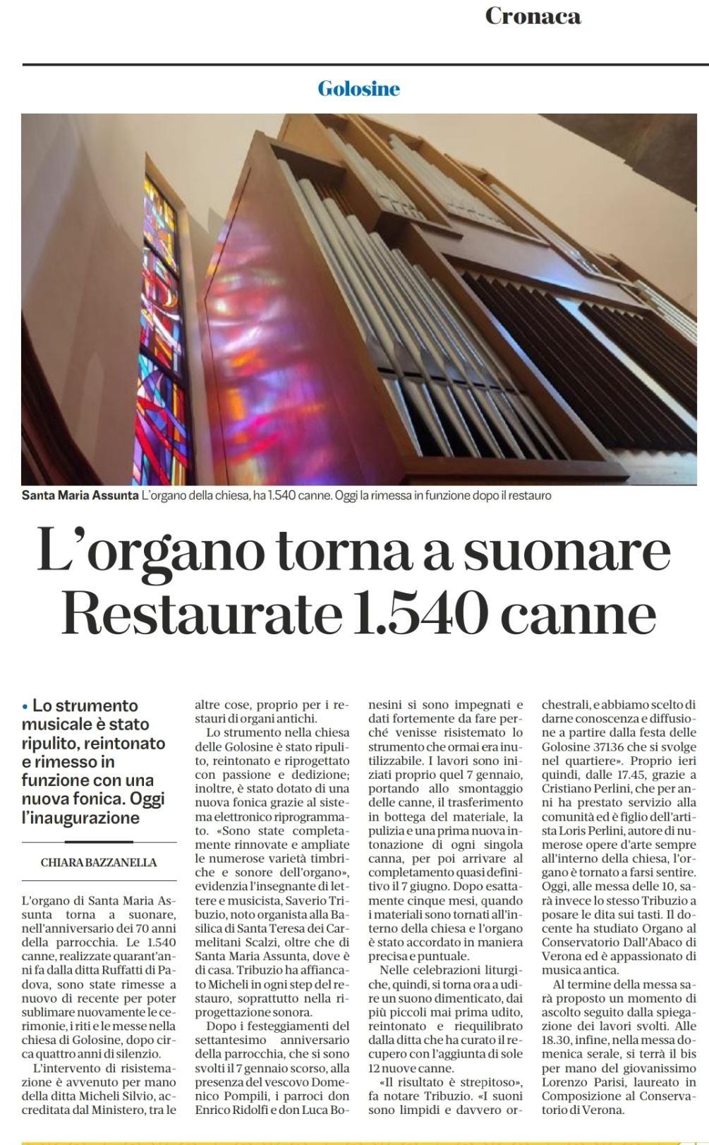 Intervento dell’organaro Micheli Silvio(febbraio/giugno