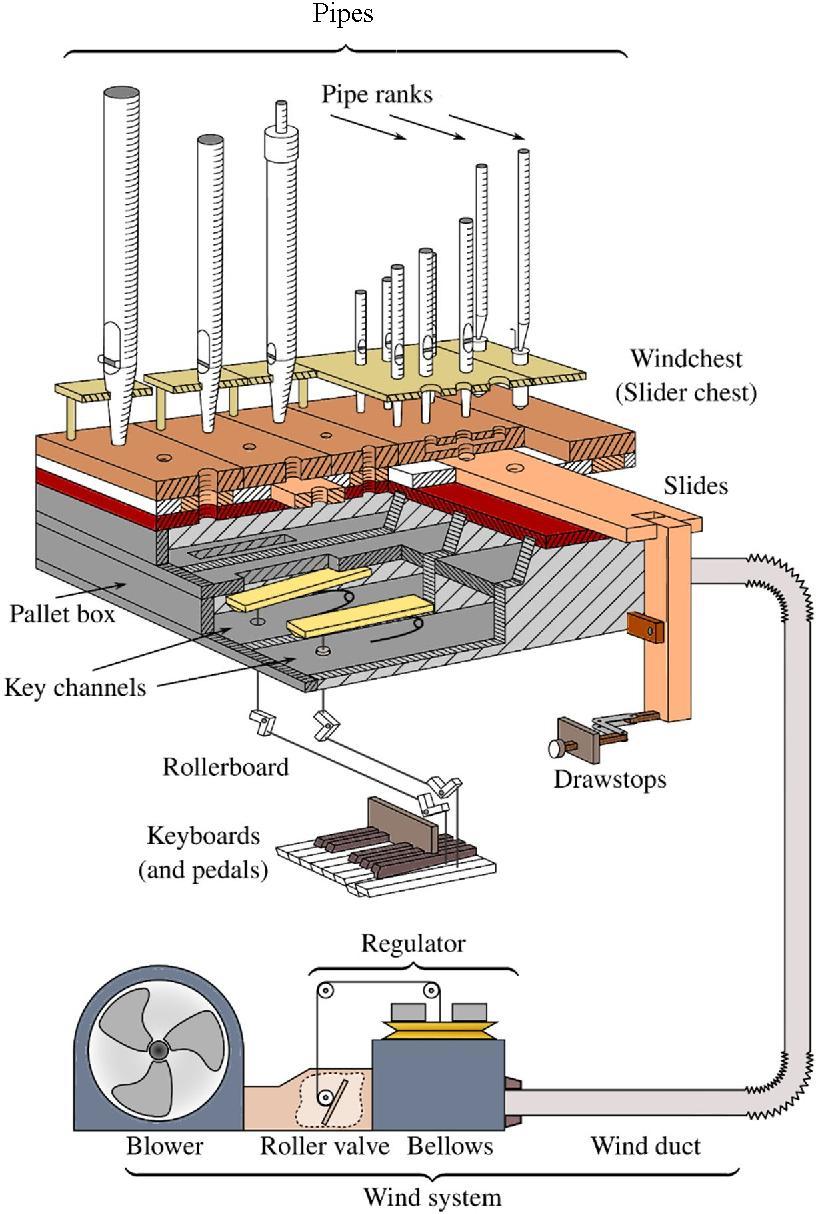 Struttura di un “somiere” in cui sono inserite tutte le canne