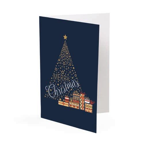 100% riciclato bianco naturale stampato a 4 colori. Decori in oro ed elementi in rilievo per dare nuova luce al più classico dei simboli del Natale.